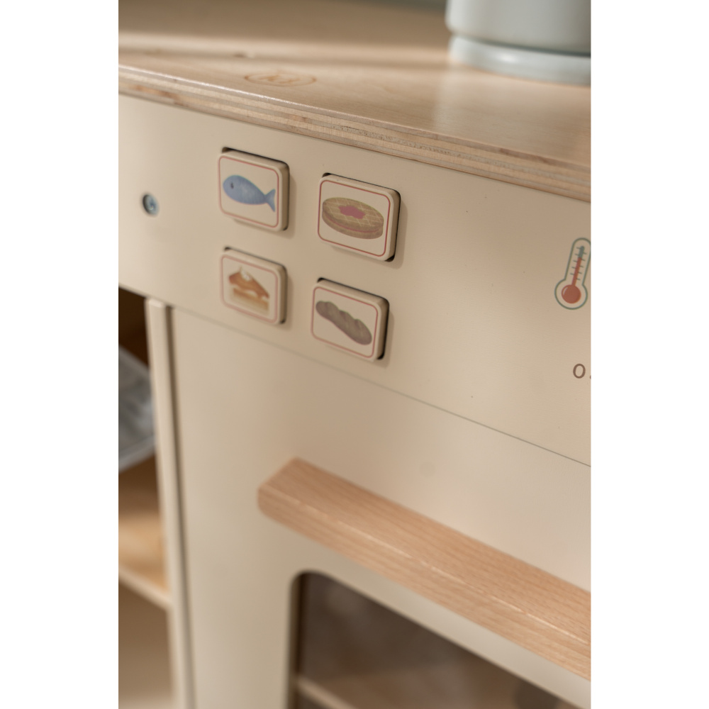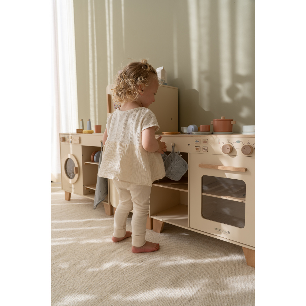 Le Cuisine fsc - edition limitée de chez Little Dutch. Cette cuisine est un jouet en bois charmant et éducatif, conçu pour stimuler l'imagination des enfants et les initier aux tâches ménagères de manière ludique. Ce jouet est garantit que le bois utilisé provient de forêts gérées de manière responsable La manipulation des boutons rotatifs et du four aide à développer la motricité fine et la coordination œil-main de l'enfant.