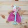 Doudou attache-sucette "Pistache la Vache" est pratique pour ne pas égarer sa sucette. Bouille canaille et souriante, couleurs fraîches et gaies à dominante rose, ce Doudou très doux.