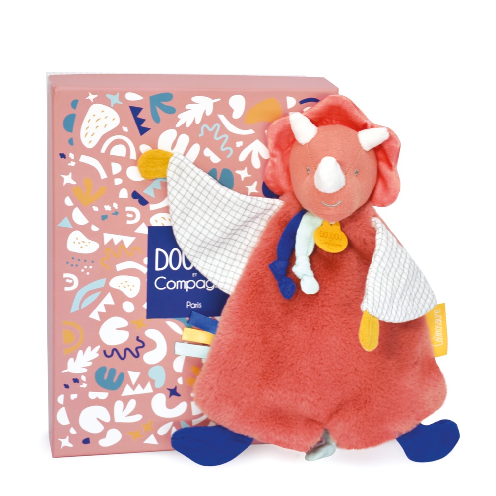 Le Doudou calinosaures lou est très coloré et tout doux. Présenté dans sa boite cadeau de présentation c'est le cadeau de naissance idéal. Tout doux, et avec plusieurs textures votre bébé va l'adorer !