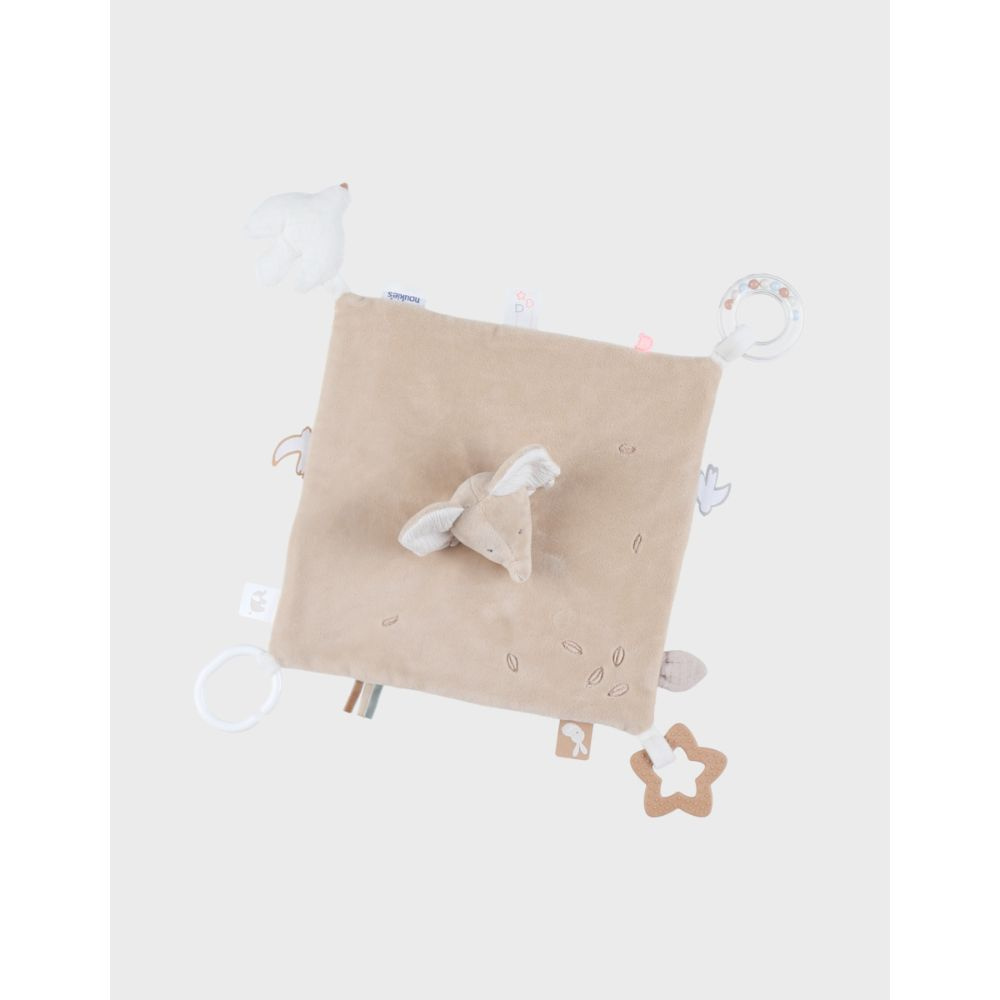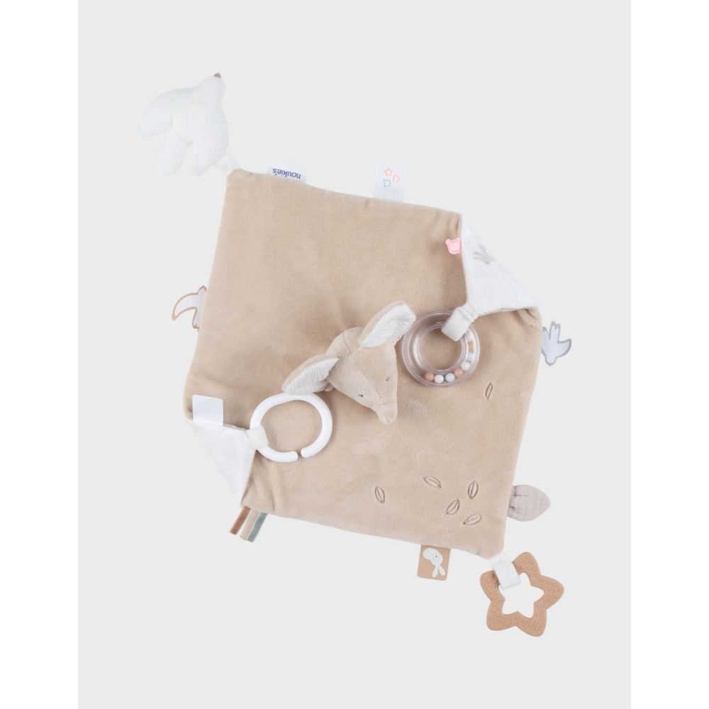 Un doudou doux et pratique pour éveiller bébé et l’accompagner partout dès la naissance. Le doudou d’activités Bali de Noukie’s est conçu pour suivre bébé partout. Grâce à sa boucle d’attache, il se fixe facilement au pyjama, à une tétine ou à un sac. Ses différentes textures, ses petits sons et son papier froissé stimulent les sens de bébé tout en le rassurant. Il peut aussi se transformer en marionnette pour des moments de jeu complices.