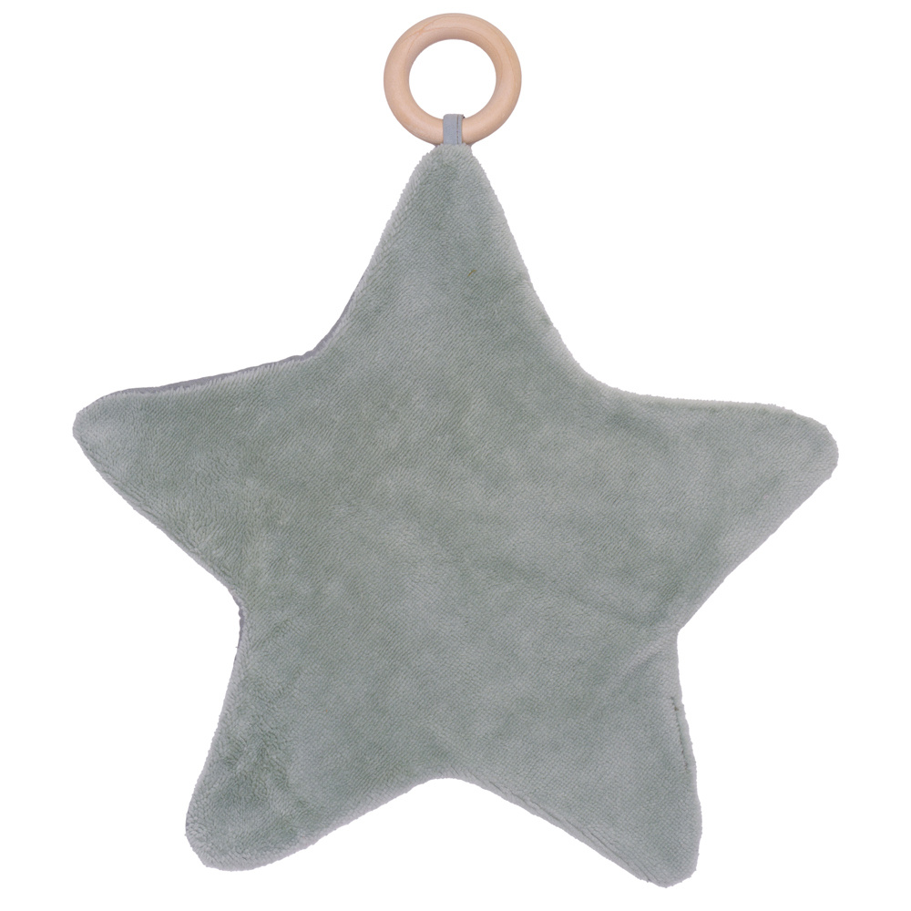 Doudou étoile bi-matière avec anneau de dentition pétale gris
