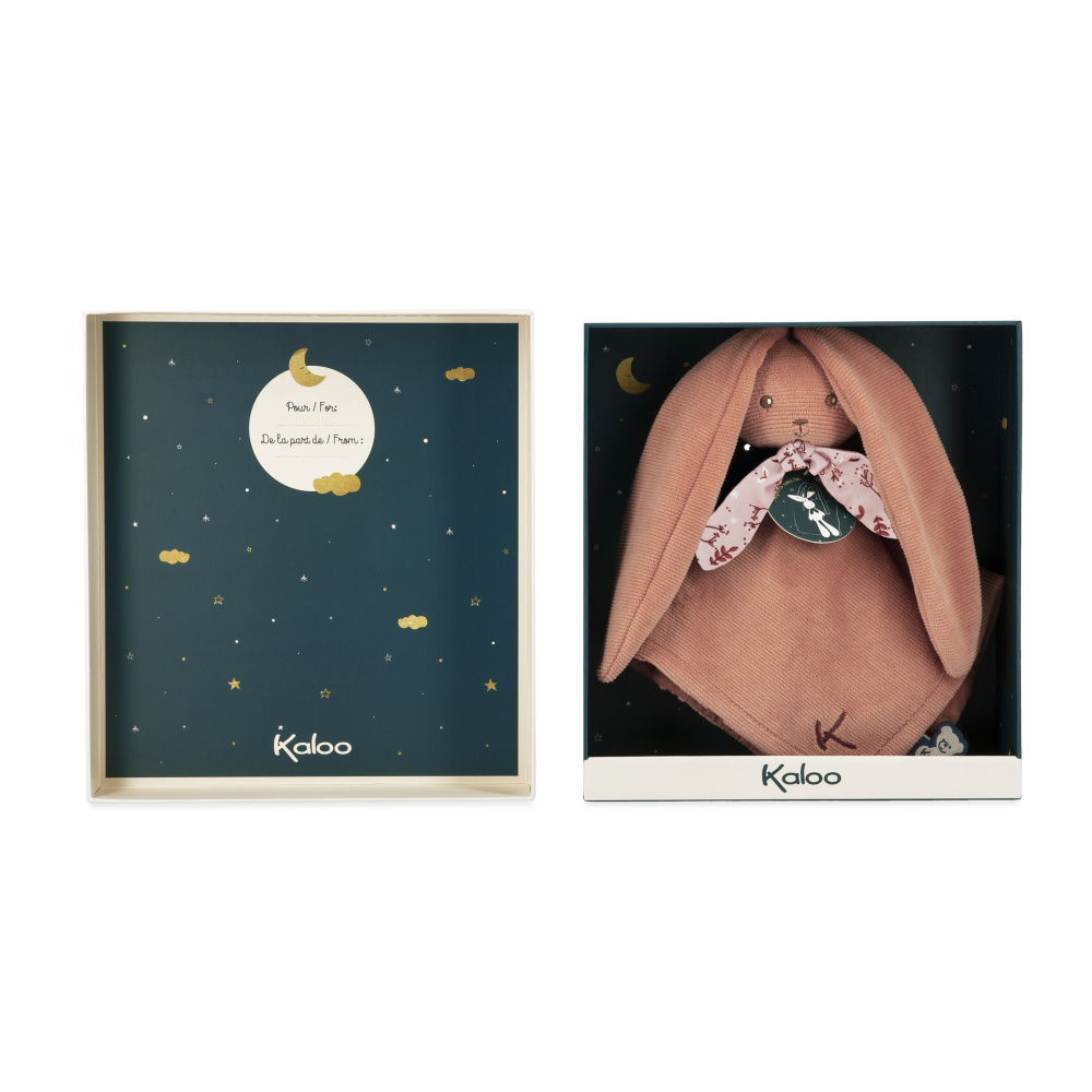 Doudou lapin lapinoo terracotta de la marque Kaloo. Ce doudou peut s'attacher partout comme au siège auto ou à la poussette grâce à ses longues oreilles. Votre bébé va adorer ce lapin très doux. Il ne pourra plus se passer de ce doudou en velours côtelé.