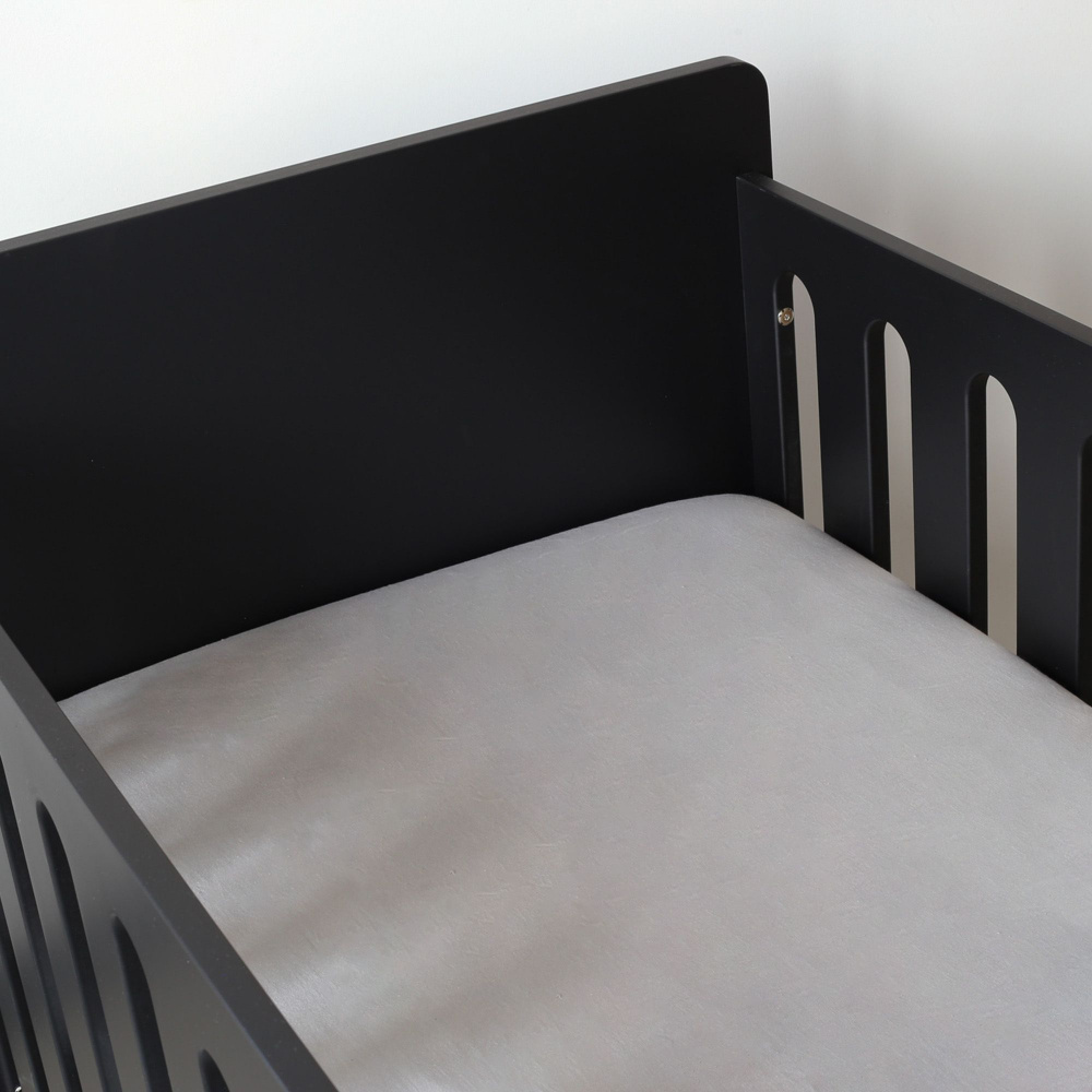 Le Drap housse gris 40 x 80 cm de chez Trois Kilos Sept. Fabriqué en coton, il apporte la douceur et le confort nécessaires à la peau sensible de bébé pendant la sieste ou la nuit.