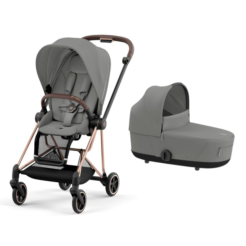 Choisissez la Poussette duo mios 3 sepia black châssis rose gold + nacelle luxe de la marque Cybex. Composée de la poussette Mios 3 et de la nacelle Luxe bébé.