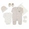 - Comprend : 1 pyjama, 1 body, 1 bonnet, 1 paire de moufles, 1 paire de chaussons et 1 sac en tissu