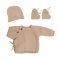 Ensemble naissance bébé brassière, bonnet et chaussons - caramel