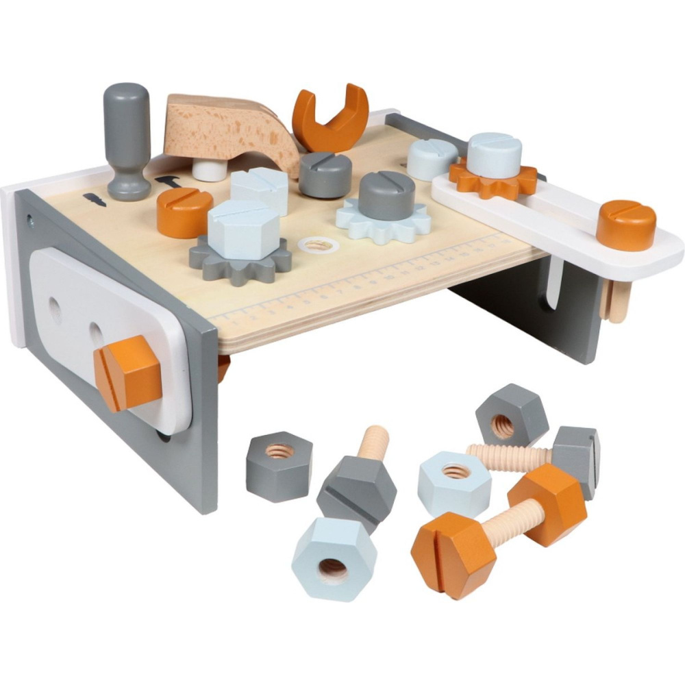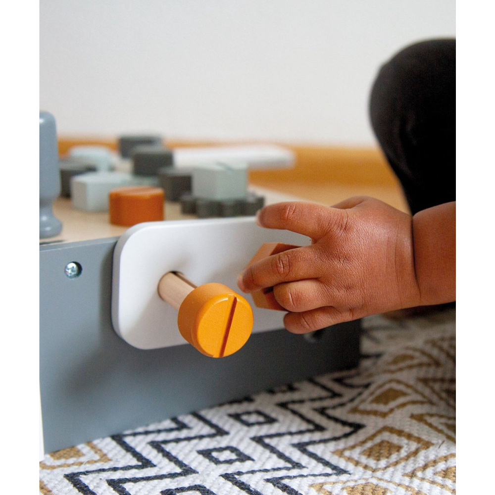 Optez pour l'Établi en bois 3 ans et + de la marque Tryco. Cet atelier miniature invite les petits bricoleurs à laisser libre cours à leur imagination et à leur créativité. Solide et adapté aux jeunes enfants, il favorise le développement de la motricité fine et de la concentration. Le coffret comprend tout le nécessaire pour s’amuser à construire et assembler : 6 boulons, 6 écrous, 3 engrenages, 2 formes à emboîter, un marteau, un tournevis et une clé. Chaque pièce a été conçue pour être maniée facilement par les petites mains, garantissant des heures de jeu en toute sécurité.