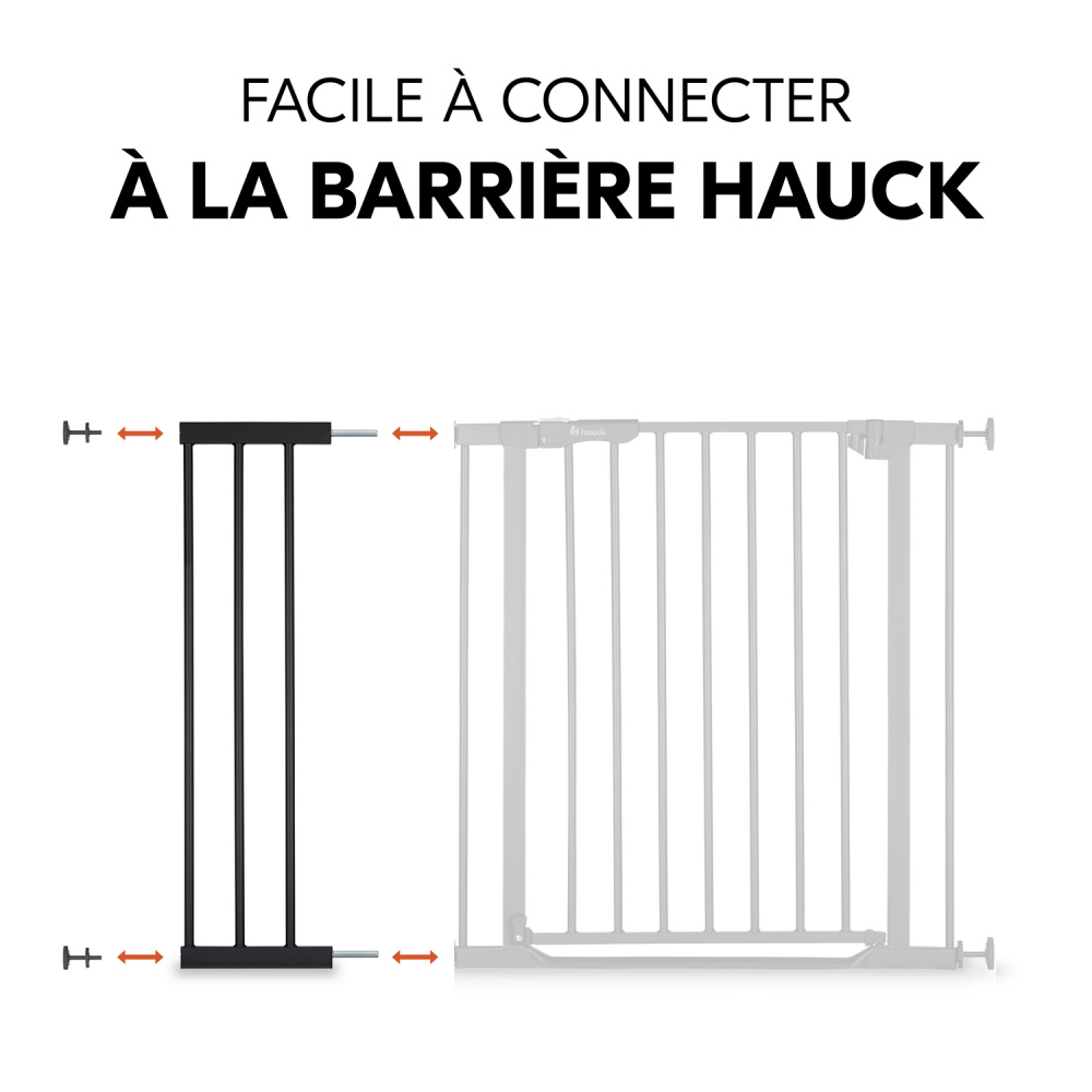 L'extension de barrière de sécurité 21 cm black de la marque Hauck. Idéale pour assurer la sécurité de votre enfant. Avec cette extension de barrière en métal de 21 cm, vous pourrez rallonger les toutes barrières Hauck que vous avez chez vous. Vous pouvez les fixer facilement une par côté de la barrière. Il vous suffit simplement d'emboiter les extensions sur la barrière. Pas besoin d'outils, ni perçage !