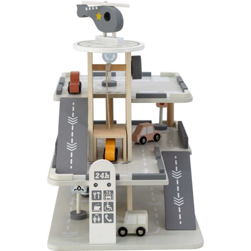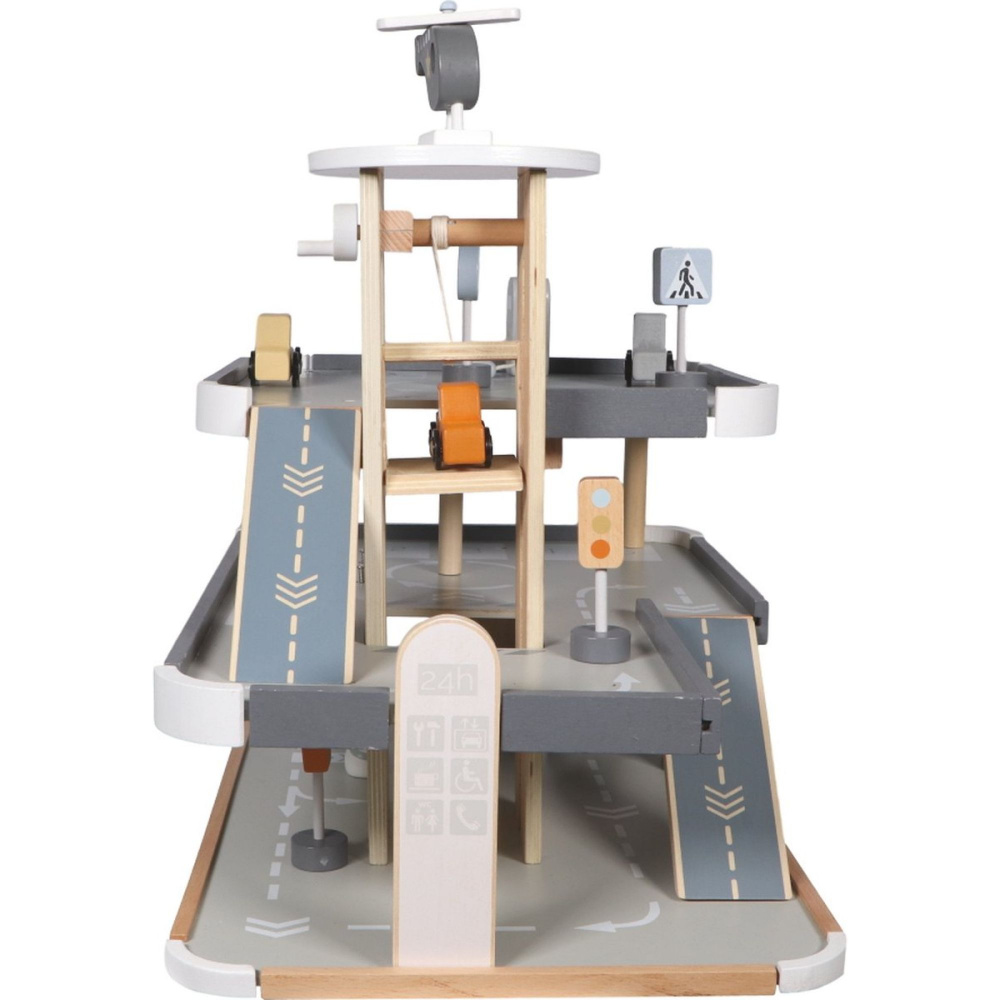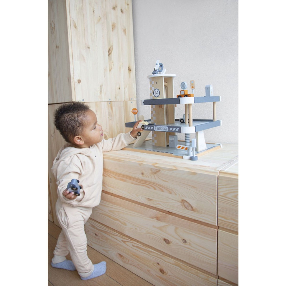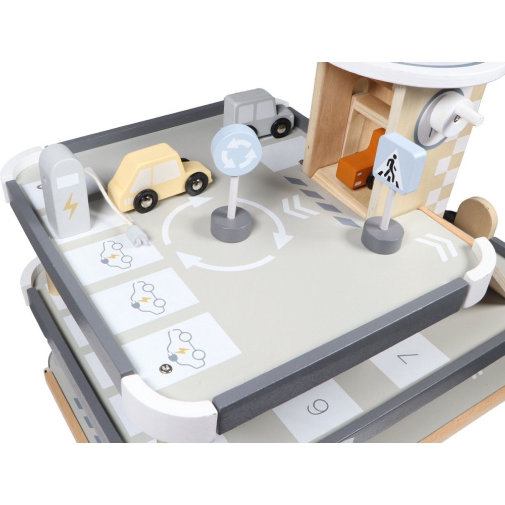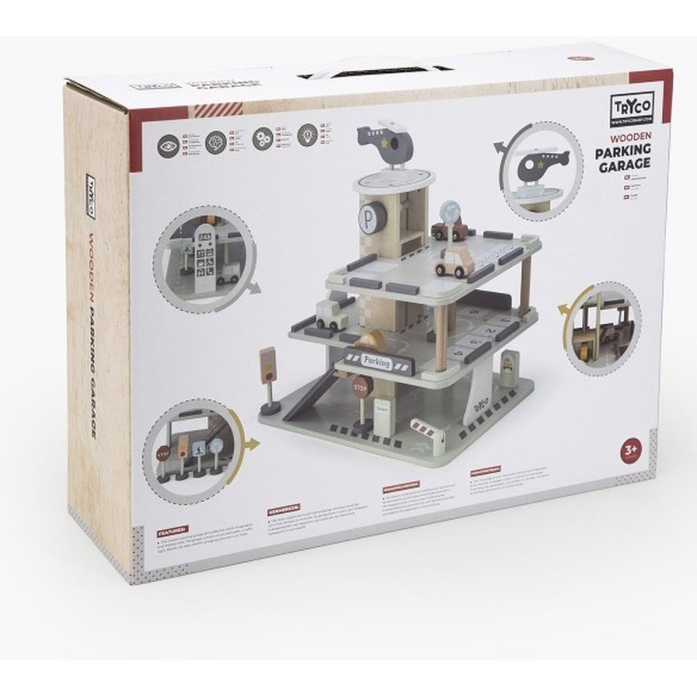 Optez pour le Garage parking en bois 3 ans et + de la marque Tryco. Ce garage à plusieurs niveaux est entièrement fabriqué en bois et pensé pour stimuler l’imagination des enfants. Avec ses rampes, son ascenseur, son espace de lavage et sa plateforme surélevée pour hélicoptère, il devient le théâtre d’aventures sans fin. Les petits conducteurs pourront stationner leurs véhicules, les faire monter ou descendre et inventer des histoires. Chaque détail est conçu pour rendre le jeu dynamique et captivant, tout en encourageant la créativité et la coordination.