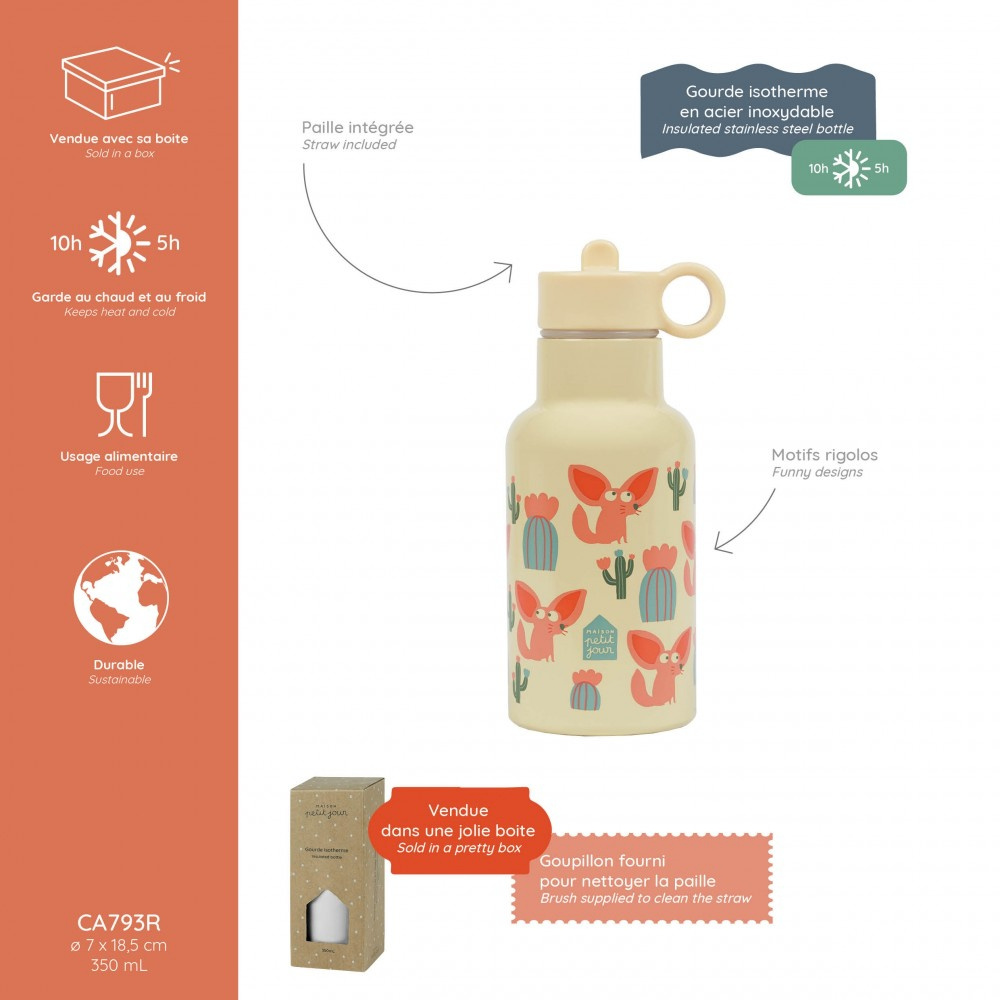 Cette gourde enfant en acier inoxydable est idéale pour garder aux frais la boisson de votre enfant. La double paroi permet une bonne isolation et ainsi de garder les boissons fraîches 10h ou chaude 5h.