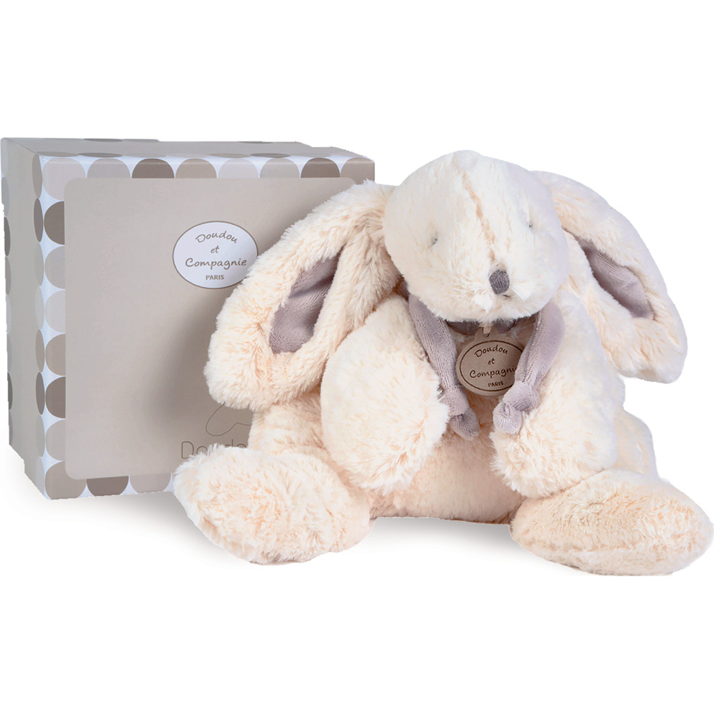Grand doudou lapin bonbon taupe de la marque Doudou et compagnie. Ce doudou est léger pour faciliter la manipulation à votre enfant. Votre petit adorera le câliner et le serrer fort contre lui.