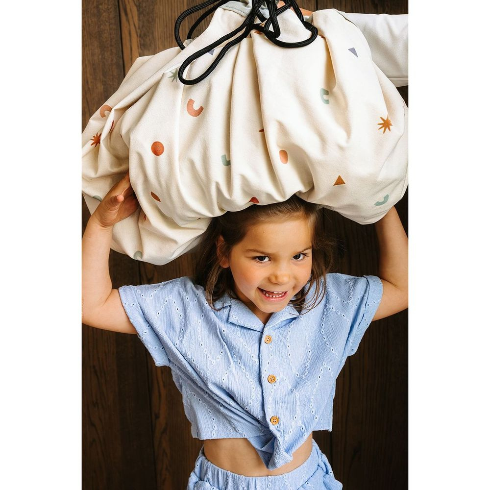 2 en 1, il pourra servir de tapis de jeux pour votre petit bout mais il vous servira également pour ranger ses jouets et ses peluches.