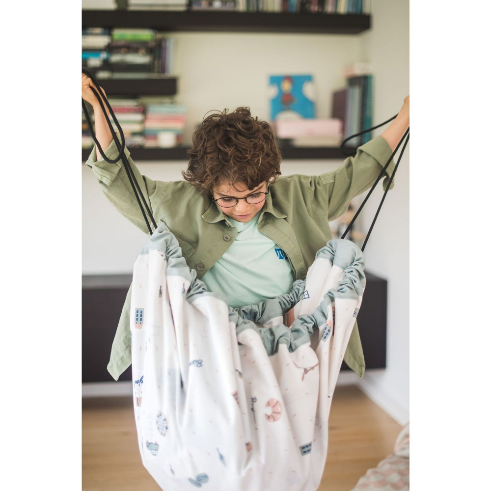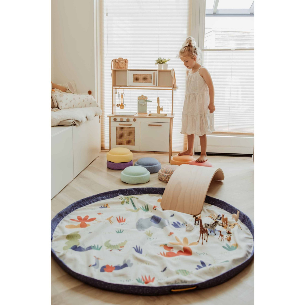 2 en 1, il pourra servir de tapis de jeux pour votre petit bout mais il vous servira également pour ranger ses jouets et ses peluches.