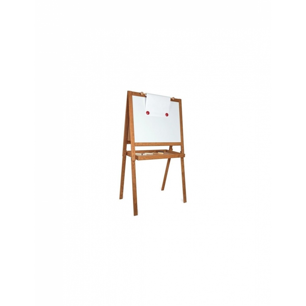 Grand tableau d'écolier vintage de la marque Vilac. Ce tableau sur pieds est fabriqué en bois massif. Ce tableau a une face ardoise avec des lignes, un alphabet et des chiffres en modèle pour pouvoir apprendre à écrire et une face blanche magnétique pour feutre effaçable et magnets. Ce produit fera un bel élément de décoration dans la chambre de votre enfant.
