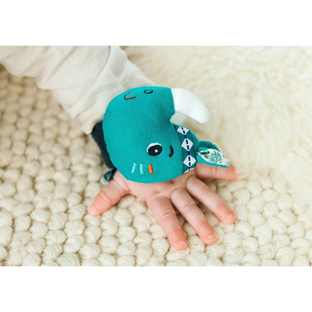 Hochet bracelet marius de la marque Lilliputiens. Pour faire tinter et sonner le hochet bracelet à son poignée, votre enfant n'aura qu'à bouger ses mains. Ce produit s'attache comme une montre avec une fermeture à scratch qui n'irrite pas la peau.