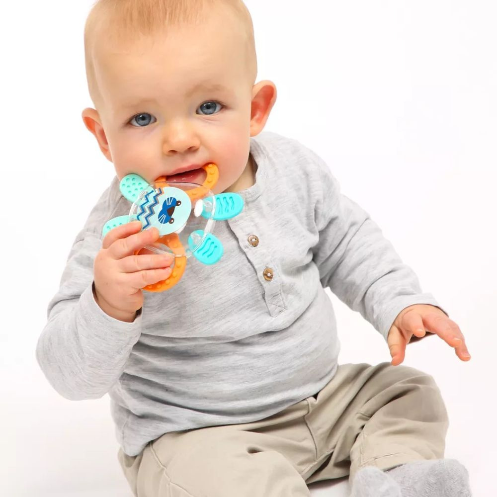 Hochet lapin de la marque Ludi. Ce petit hochet est très pratique puisqu'il peut s'emporter partout. Le hochet est transparent pour que votre enfant puisse observer les petites billes à l'intérieur. Il adorera secouer ce hochet pour faire du bruit. Il pourra aussi soulager ses dents en mordillant les pattes et les oreilles du lapin en plastique doux.