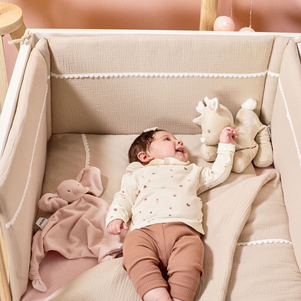 La Housse de couette avec taie 100x140cm gaze de coton fanfan de chez Nattou. Merveilleusement douce, la housse de couette pourra être placée dans le lit. Votre bébé s'endormira confortablement. Elle comprend une housse de couette ainsi qu'une taie d'oreiller assortie. Elle apportera une incroyable douceur à votre petit bout, au moment de se glisser sous la couverture. D'un côté de la housse, les meilleurs amis sont représentés et de l'autre côté, elle est unie.