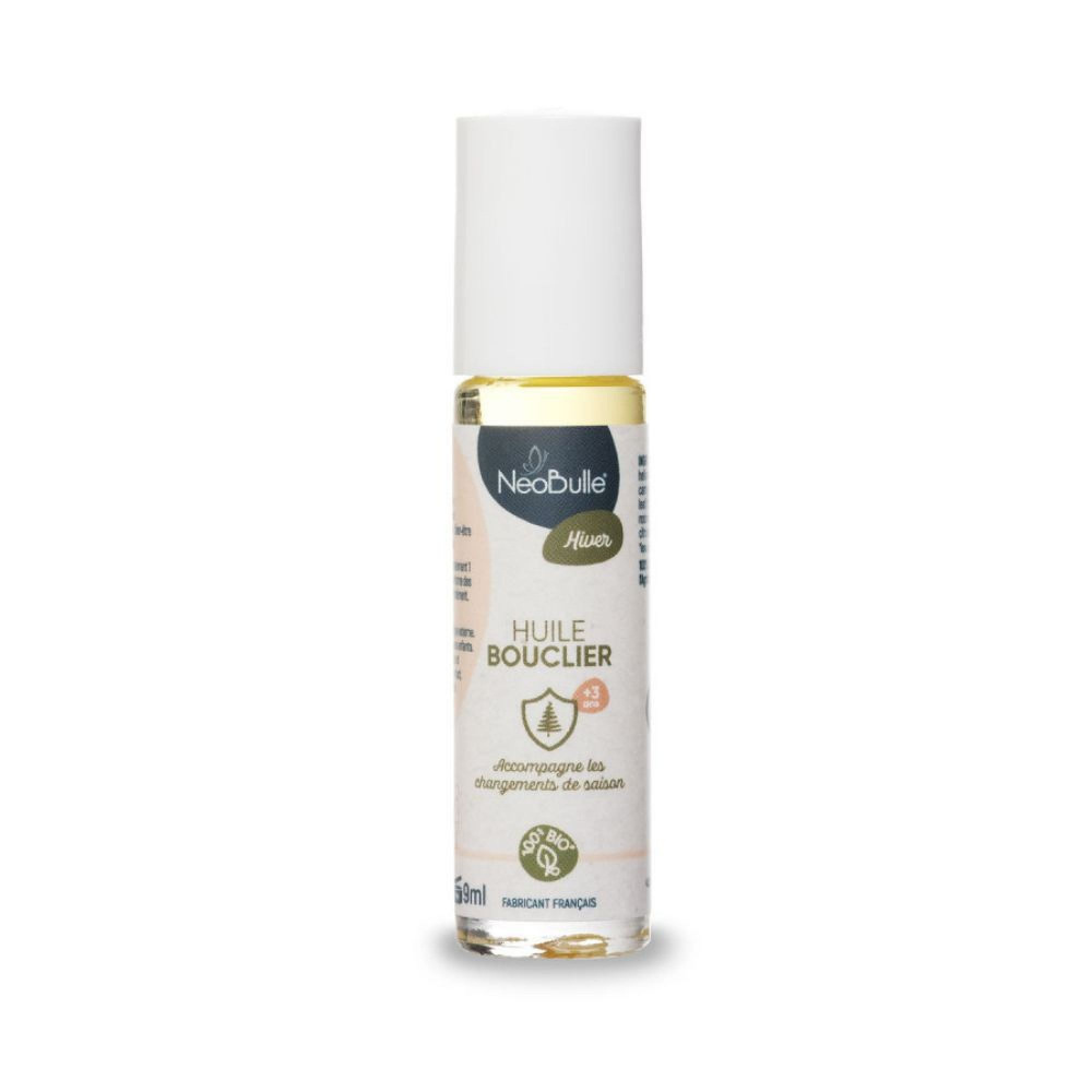 Découvrez l'Huile aromatique tonifiante bouclier 9ml de la marque Néobulle, l’indispensable de l’hiver pour toute la famille dès 3 ans. Ce roll-on 100 % bio associe des huiles essentielles tonifiantes (thym, eucalyptus, ravintsara) pour stimuler les défenses naturelles et apporter un vrai coup de boost en cas de fatigue ou de refroidissement. Facile à appliquer sur les poignets, le dos ou les pieds, elle s’utilise 1 à 3 fois par jour pour créer une bulle de protection douce et efficace au quotidien.