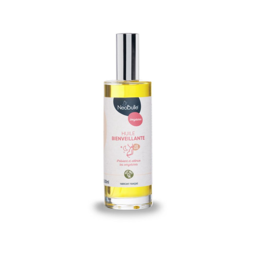 Découvrez l'Huile de massage bienveillante vergetures 20ml de la marque Néobulle. Le soin anti-vergetures 100% bio qui nourrit, assouplit et aide à prévenir les vergetures pendant et après la grossesse. Sa texture douce et non grasse s’applique dès le 3e mois pour un massage réconfortant, compatible avec l’allaitement.