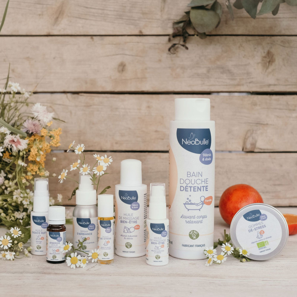 Caractéristiques de l'huile de massage du soir Néobulle :