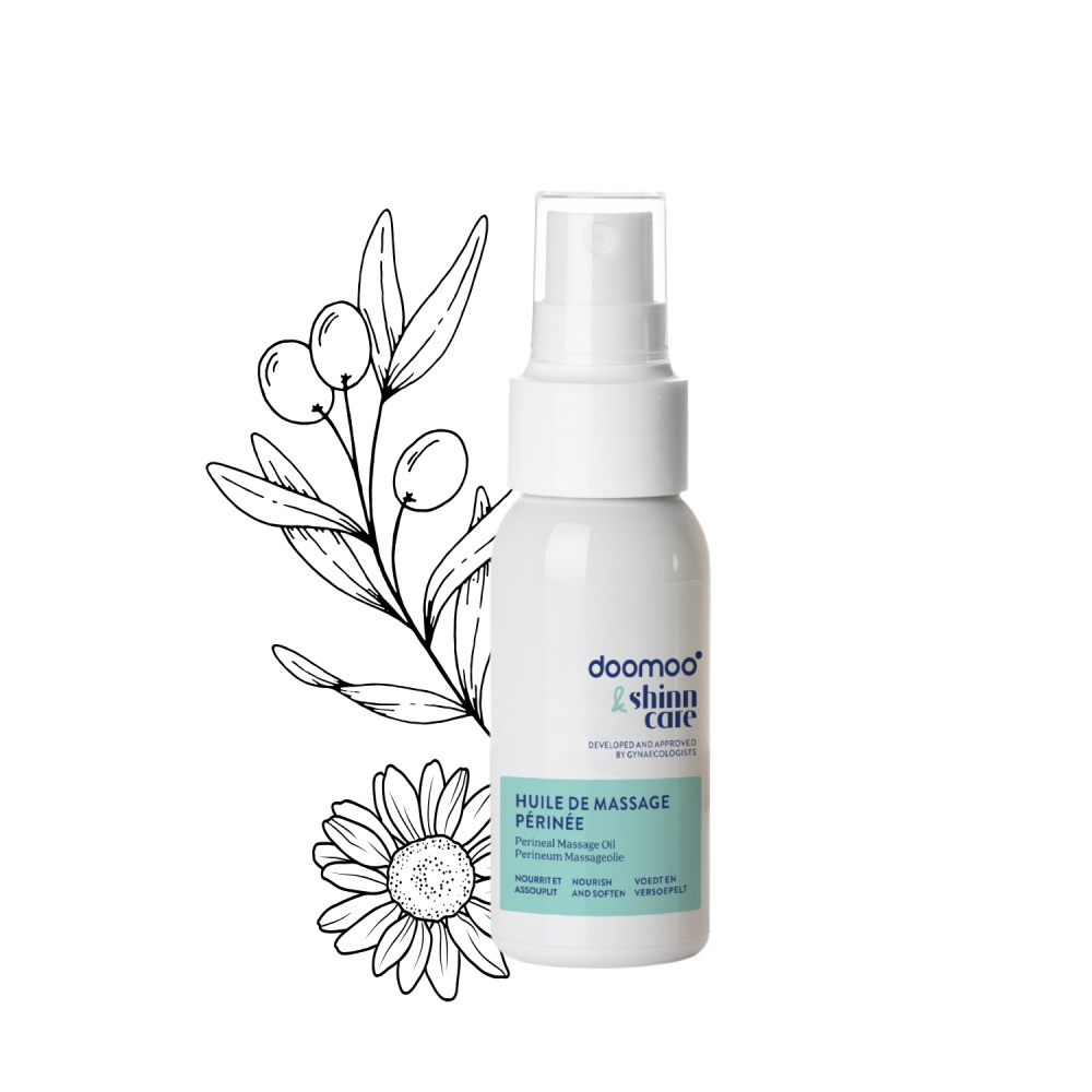L’Huile massage périnée grossesse Shinncare x Doomoo aide à assouplir les tissus dès la 35e semaine de grossesse afin de préparer la peau du périnée et de limiter les risques de déchirure ou d’épisiotomie lorsqu’elle est utilisée avec le massage périnéal. Formulée avec des ingrédients naturels comme l’huile d’olive, l’amande douce, la camomille et la vitamine C, elle hydrate, apaise et favorise la régénération cutanée. Après l’accouchement, elle accompagne aussi la cicatrisation des points et éraflures. Son spray pratique fonctionne même tête en bas pour une application simple et confortable. Adaptée aux peaux sensibles et aux personnes végans.