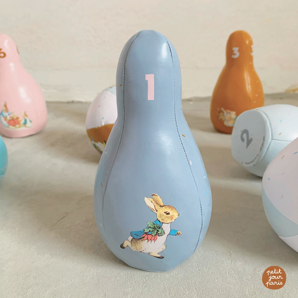 Craquez pour ce Jeu de quilles pierre lapin de la marque Petit Jour Paris. Spécialement conçu pour développer la motricité de bébé ; il est composé de 6 quilles et 2 balles souples joliment décorées à l'effigie de Pierre Lapin. Grâce à sa matière souple et résistante , vous pourrez utiliser ce jeu de quilles aussi bien en intérieur qu'en extérieur.
