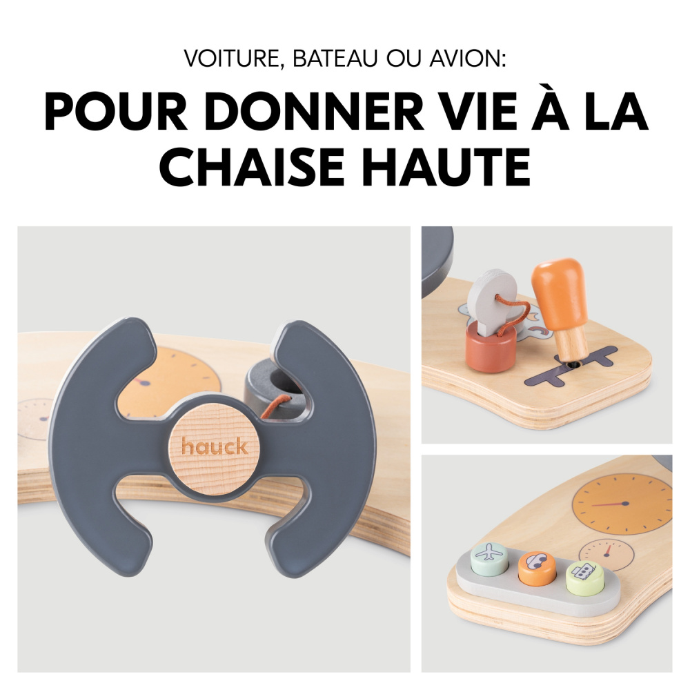 Le Play Cockpit transforme la chaise haute en bois Alpha+, Beta+ ou Arketa en véhicule pour votre enfant ! Le