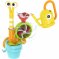 Un jouet de bain sur le thème du jardin : un pot de fleurs avec un escargot qui surgit et un moulin à eau qui tourne. Comprend également un arrosoir qui peut être utilisé pour arroser la fleur au-dessus de l'escargot et déclencher simultanément une réaction surprenante.