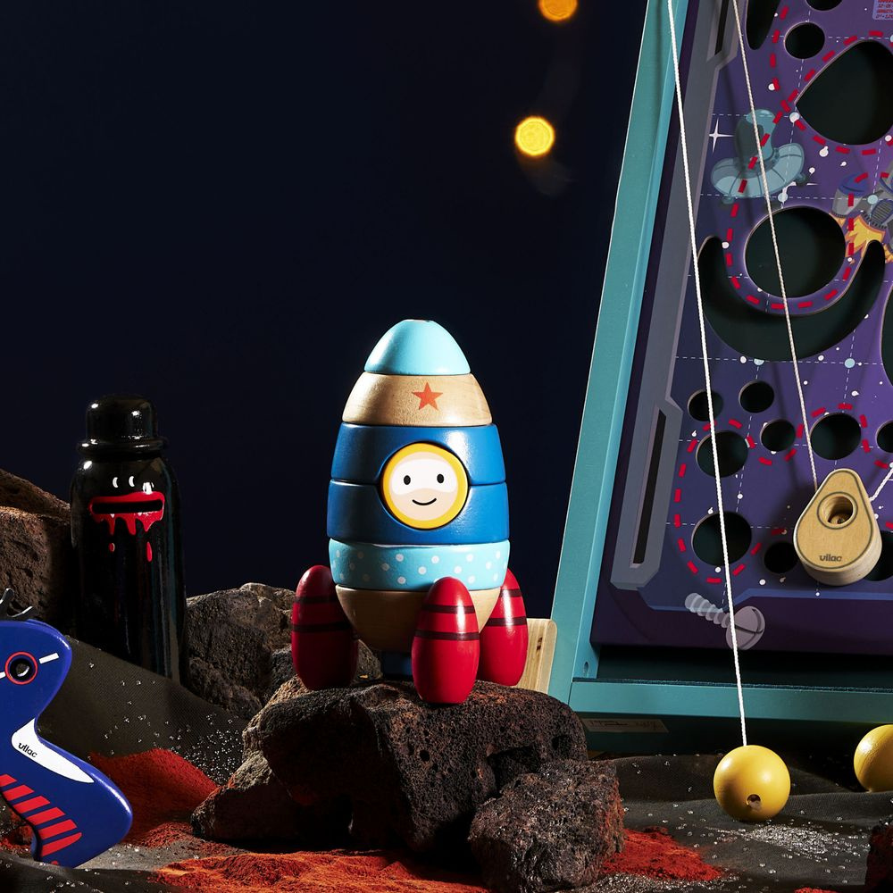 Jouet d'éveil en bois à empiler fusée