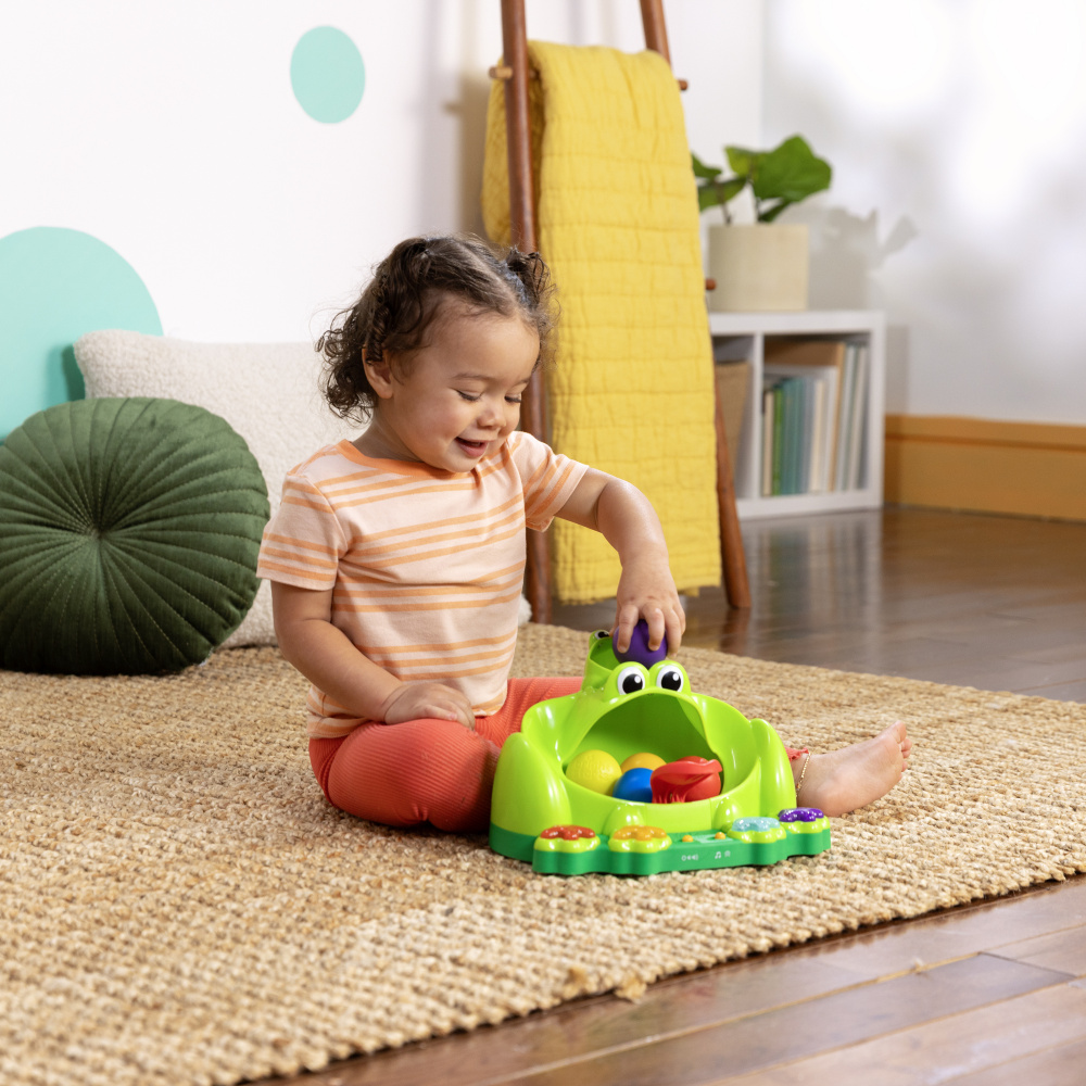 Ce jouet d’éveil interactif invite bébé à explorer, ramper et rire à travers le jeu de balles, les sons rigolos et les lumières dansantes. Conçu pour les enfants dès 6 mois, ce jouet stimule le développement moteur, la coordination œil-main et la compréhension du lien cause-effet. Bébé s’amuse à faire tomber les balles dans la bouche de la grenouille : elles ressortent en bondissant ou roulent le long des rampes latérales. En appuyant sur les boutons colorés, il découvre plus de 50 sons, mélodies et effets lumineux pour encore plus de surprises. Grâce à ses 4 modes de jeu évolutifs, la grenouille encourage bébé à bouger, ramper et explorer son environnement tout en apprenant. Un jouet éducatif et amusant, parfait pour accompagner les premières découvertes !