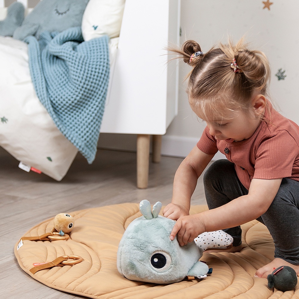 Le Jouet d'éveil wally bleu de chez Done By Deer. Il a été spécialement conçu pour développer les sens de votre enfant tels que la concentration et la coordination oeil-main. Les petits poissons en peluche adorent jouer à cache-cache à l'intérieur de Wally ! Votre enfant va adorer découvrir les différents sons des poissons. Il pourra également admirer son reflet dans le miroir cacher sous la nageoire de la baleine.