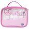 Kit manucure roseLe kit de manucure pour bébé comprend une paire de ciseaux à bouts ronds avec capuchon protecteur,6 limes à ongles en carton émerisé convenant aux nouveau-nés, un coupe-ongles pour bébé et une brosse à ongles, le tout rangé dans une petite pochette de voyage avec poignée.