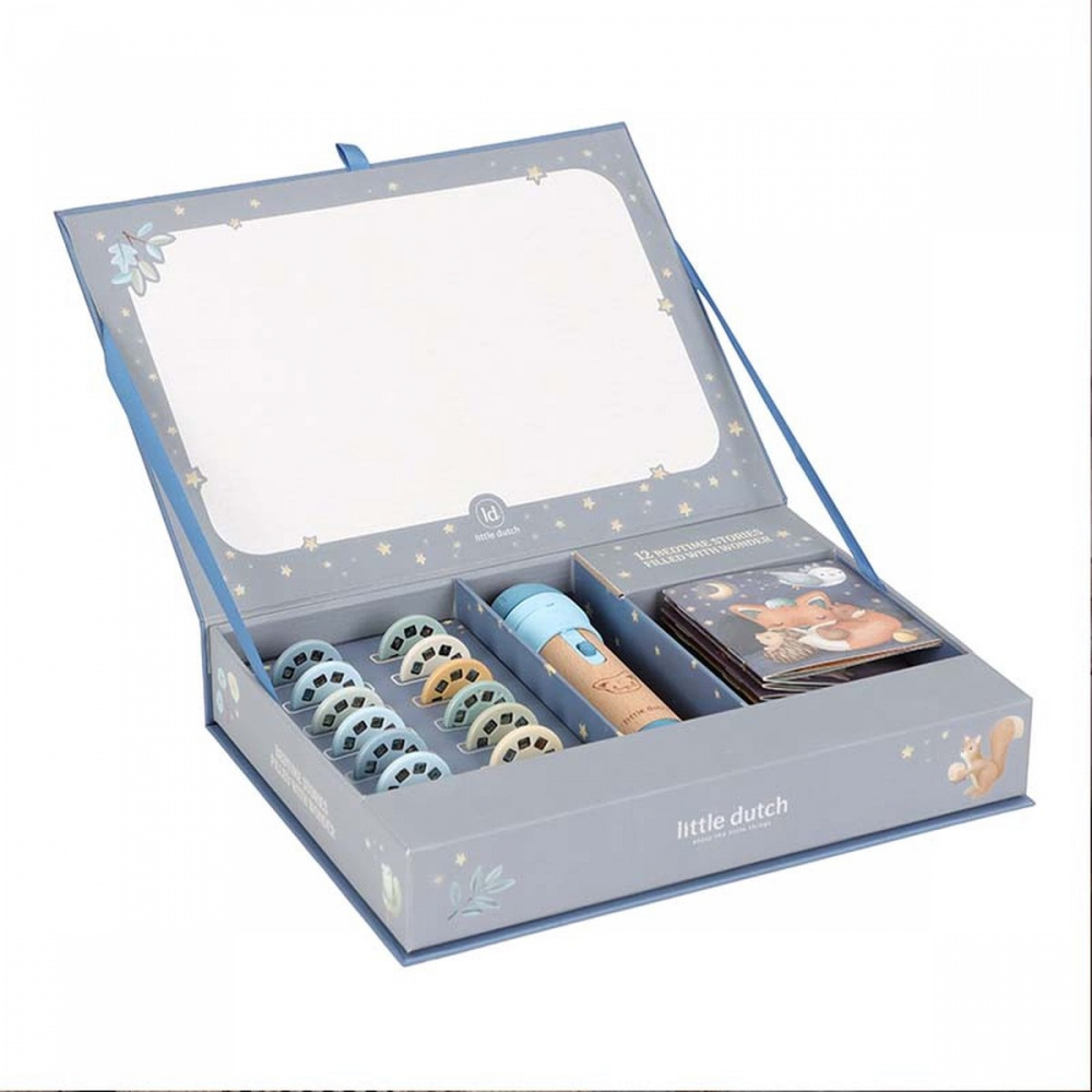 La Lampe à histoires - forest friends de chez Little Dutch. Cette Lampe à histoires est un projecteur de contes enchanteur conçu pour stimuler l'imagination des enfants avant de dormir. Elle transforme la chambre en un théâtre d'ombres magique. a lampe émet une lumière douce et tamisée, idéale pour créer une atmosphère relaxante et propice à l'endormissement. Elle peut également servir de veilleuse douce. La lampe à histoires n'est pas seulement un projecteur d'images, mais elle encourage également les parents à raconter des histoires basées sur les images projetées. Cela favorise le lien entre le parent et l'enfant, le développement du langage et l'imagination de l'enfant.