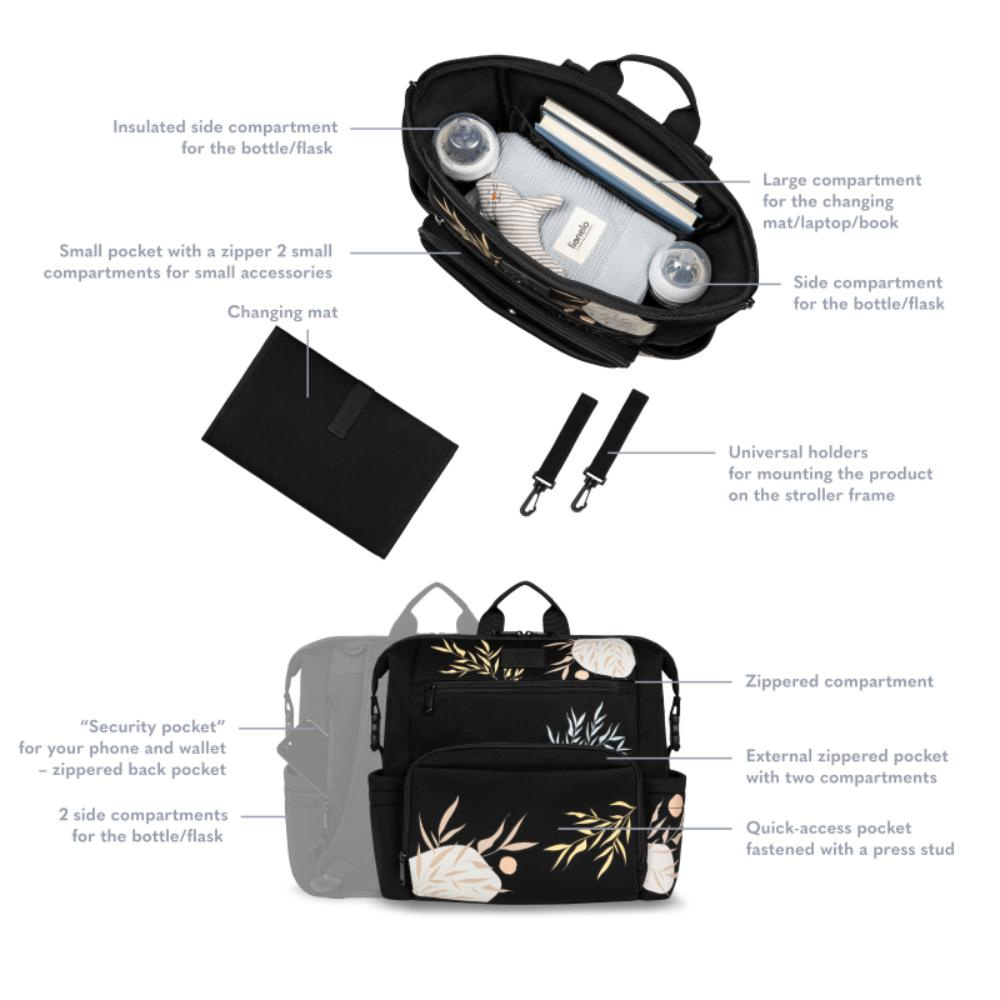 Le Le sac à dos universel lionelo cube lovin de la marque Lionelo. Multi-usages, vous pourrez l'utiliser comme sac à langer, bagage à main ou sac à dos à usage quotidien. Doté de 12 poches, il sera pratique pour ranger toutes affaires dont vous aurez besoin : Une poche pour votre ordinateur ou tablette, une poche pour le biberon et plein d'autres pour vos accessoires. Fixez-le facilement à votre poussette grâce à ses fixations amovibles, un matelas à langer à scratch vous est également fourni. Ainsi, vous aurez tout à portée de main lorsque vous prendrez votre bébé en sortie. Solide et résistant, il vous accompagnera pendant de longues années.