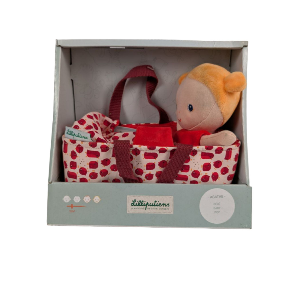 Les imparfaits - bébé agathe de la marque Lilliputiens. Votre enfant va adorer prendre soin de cette poupée bébé. C'est un jeu d'imitation parfait pour que votre nourrisson apprenne à s'occuper d'un autre bébé par l'éveil. Ce produit contient 1 bébé, 1 couffin, un pyjama, une couverture et une couche.