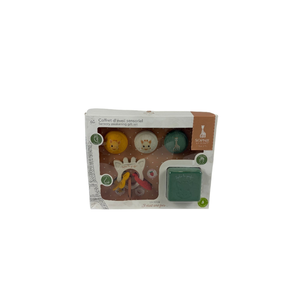 Les imparfaits - coffret d'éveil des 5 sens coffret éveil des 5 sens (cube + anneau de dentition + balles musicales) de la marque Vulli. Ce produit est fabriqué à partir de caoutchouc 100% naturel. Votre petit adorera passer des heures à s'amuser avec ce coffret d'éveil. Le coffret est composé de 3 balles musicales, un anneau senteur et un cube avec différentes textures. Ce coffret développe tous les sens de votre enfant !