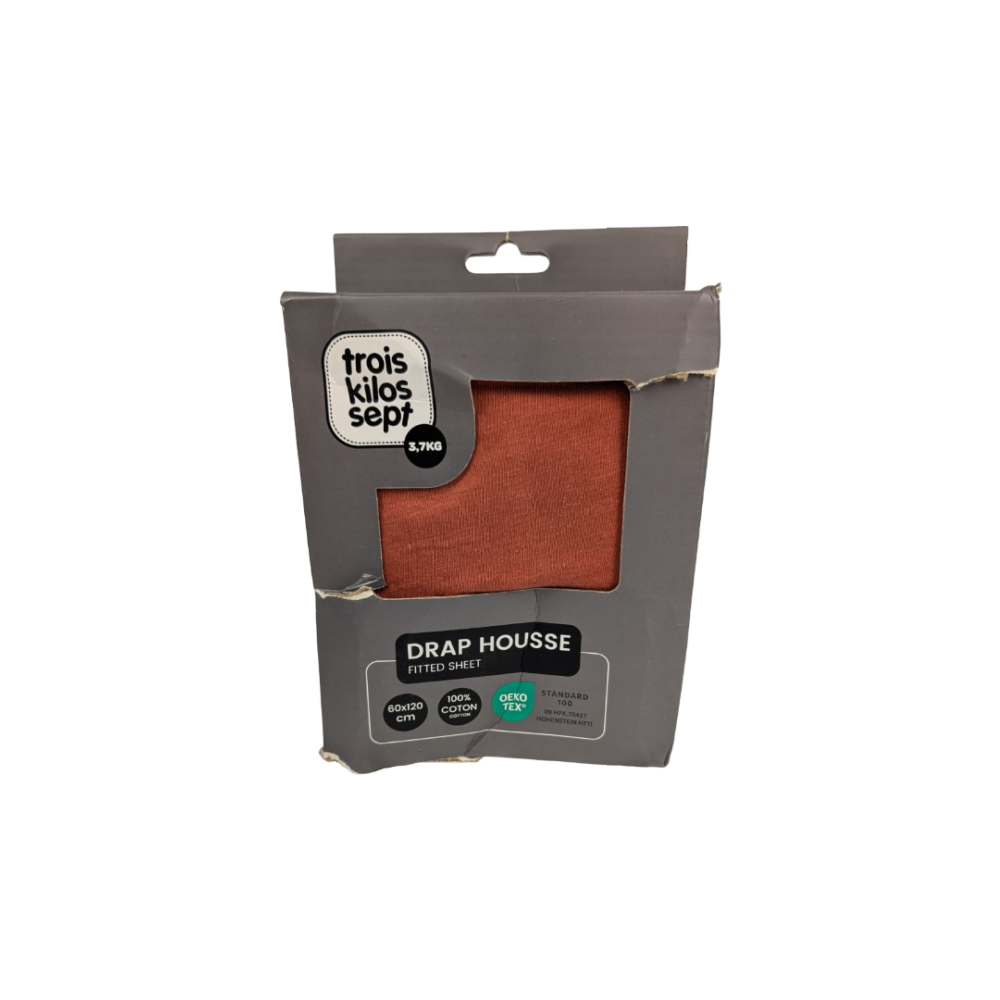 Le Les imparfaits - drap housse terracotta 60 x 120 cm de chez Trois Kilos Sept. Fabriqué en coton, il apporte la douceur et le confort nécessaires à la peau sensible de bébé pendant la sieste ou la nuit.
