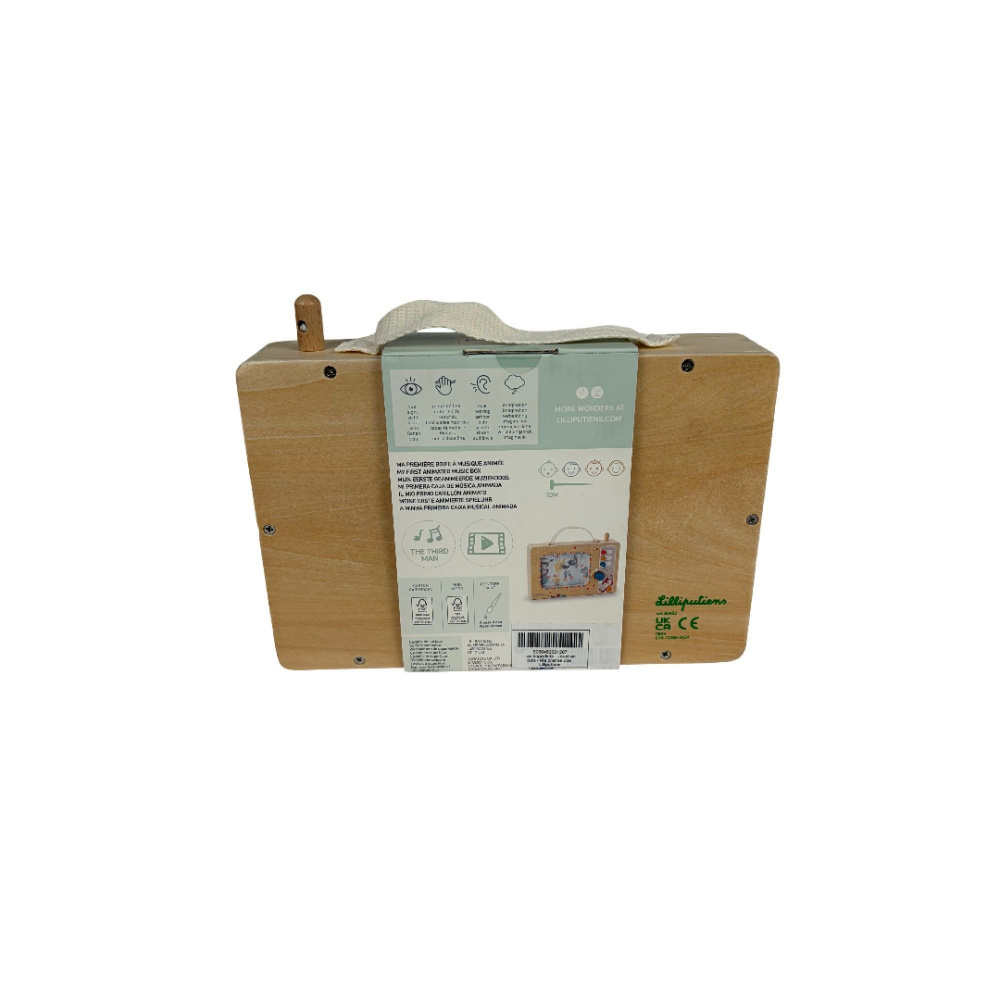 Ma première boîte à musique animée de la marque Lilliputiens. Cette boîte retrace les aventures des différents personnages Lilliputiens comme Pablo, Alice, Stella ou Joe. Avec la poignée, votre bébé pourra l'emmener facilement partout avec lui. Pour faire marcher la boîte, il faudra tourner les 3 boutons.