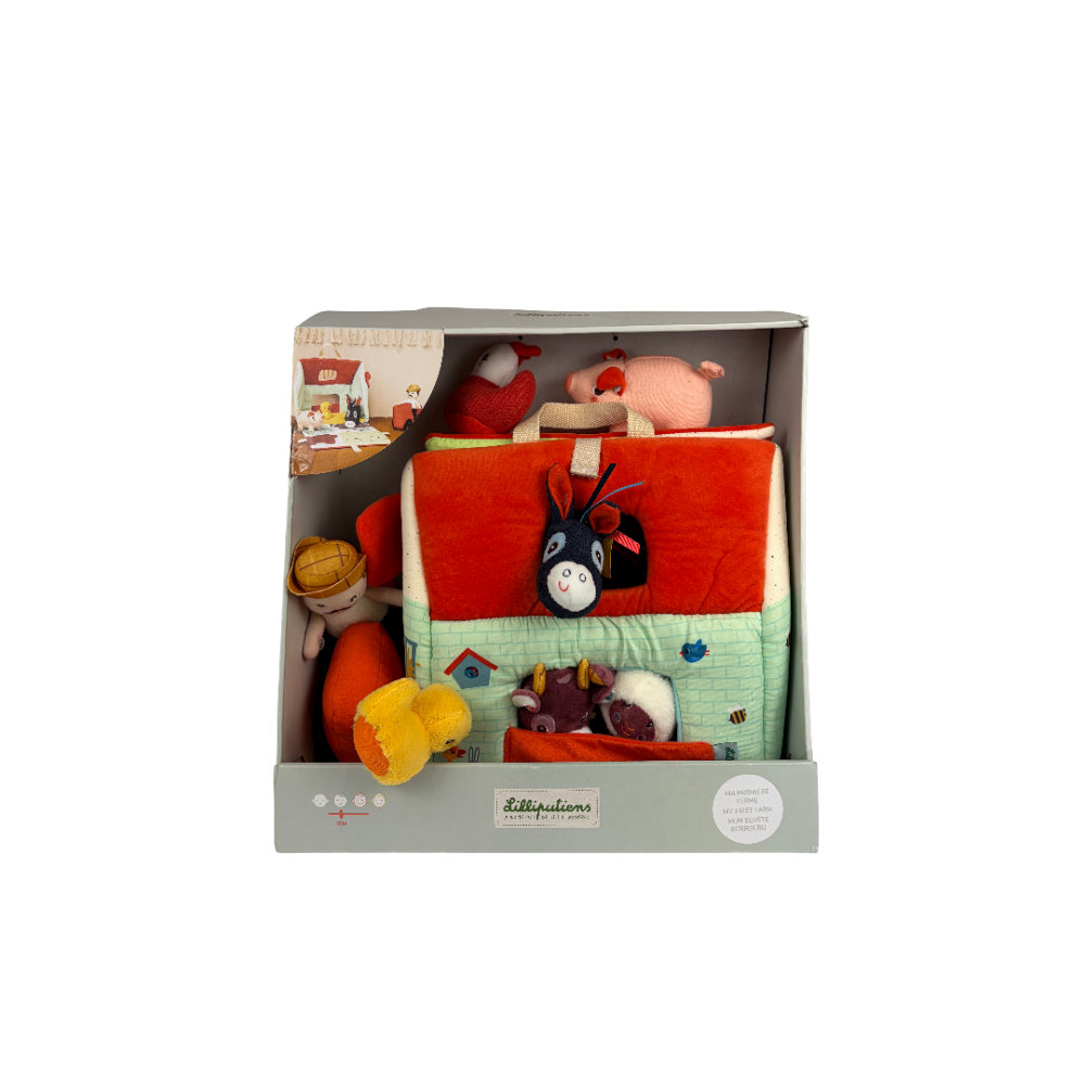 Les imparfaits - ma première ferme de la marque Lilliputiens. Ce jouet permet à votre enfant de découvrir tout le petit monde de la ferme. Dans ce jeu, il y a 6 animaux et le fermier et son tracteur. Les petits jouets sont adaptés aux petites mains de votre enfant. Tous les petits jouets se rangent à l'intérieur de la ferme. La poignée sur le toit permettra à votre enfant de transporter la ferme partout avec lui.