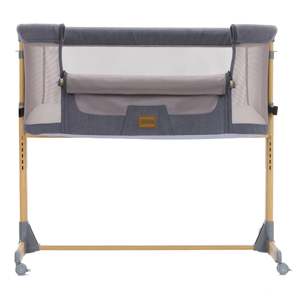 Decouvrez le lit d'appoint Cocon de la marque Fillikid. Il peut être fixé au lit des parents à l'aide de sangles. Cela offre une stabilité et une sécurité supplémentaires. Les parties latérales peuvent être abaissées et la surface de couchage est réglable en hauteur sur 3 niveaux, le Cocon peut donc être parfaitement adapté à la hauteur du lit des parents. En même temps, le lit d'appoint peut être utilisé de manière autonome comme berceau et déplacé dans l'appartement grâce à des roulettes pratiques.