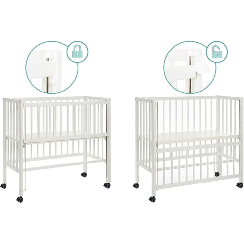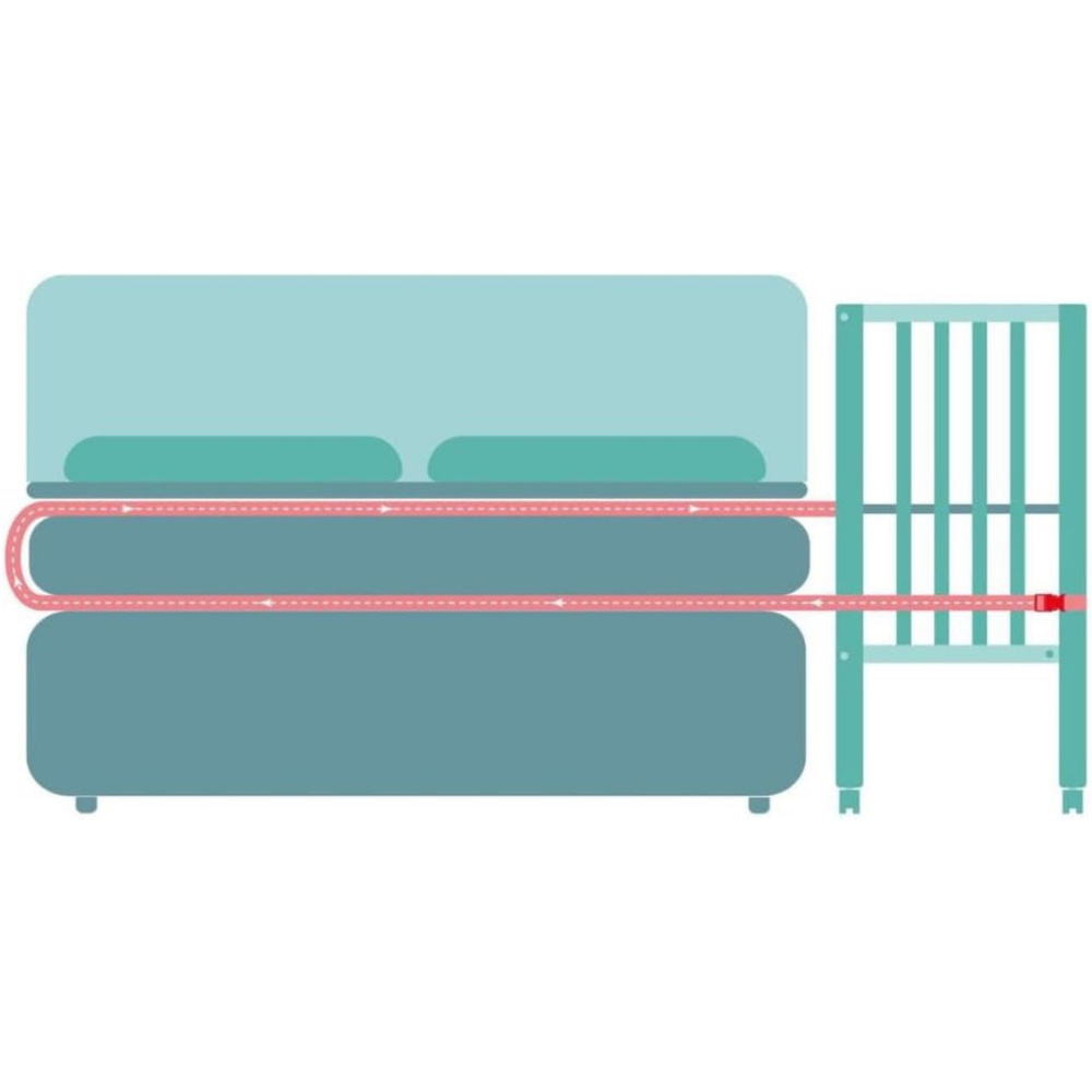 Decouvrez le lit d'appoint Cocon de Fillikid. Il peut peut être fixé au lit des parents à l'aide de sangles. Cela offre une stabilité et une sécurité supplémentaires. Les parties latérales peuvent être abaissées et la surface de couchage est réglable en hauteur sur 3 niveaux, le Cocon peut donc être parfaitement adapté à la hauteur du lit des parents. En même temps, le lit d'appoint peut être utilisé de manière autonome comme berceau et déplacé dans l'appartement grâce à des roulettes pratiques.