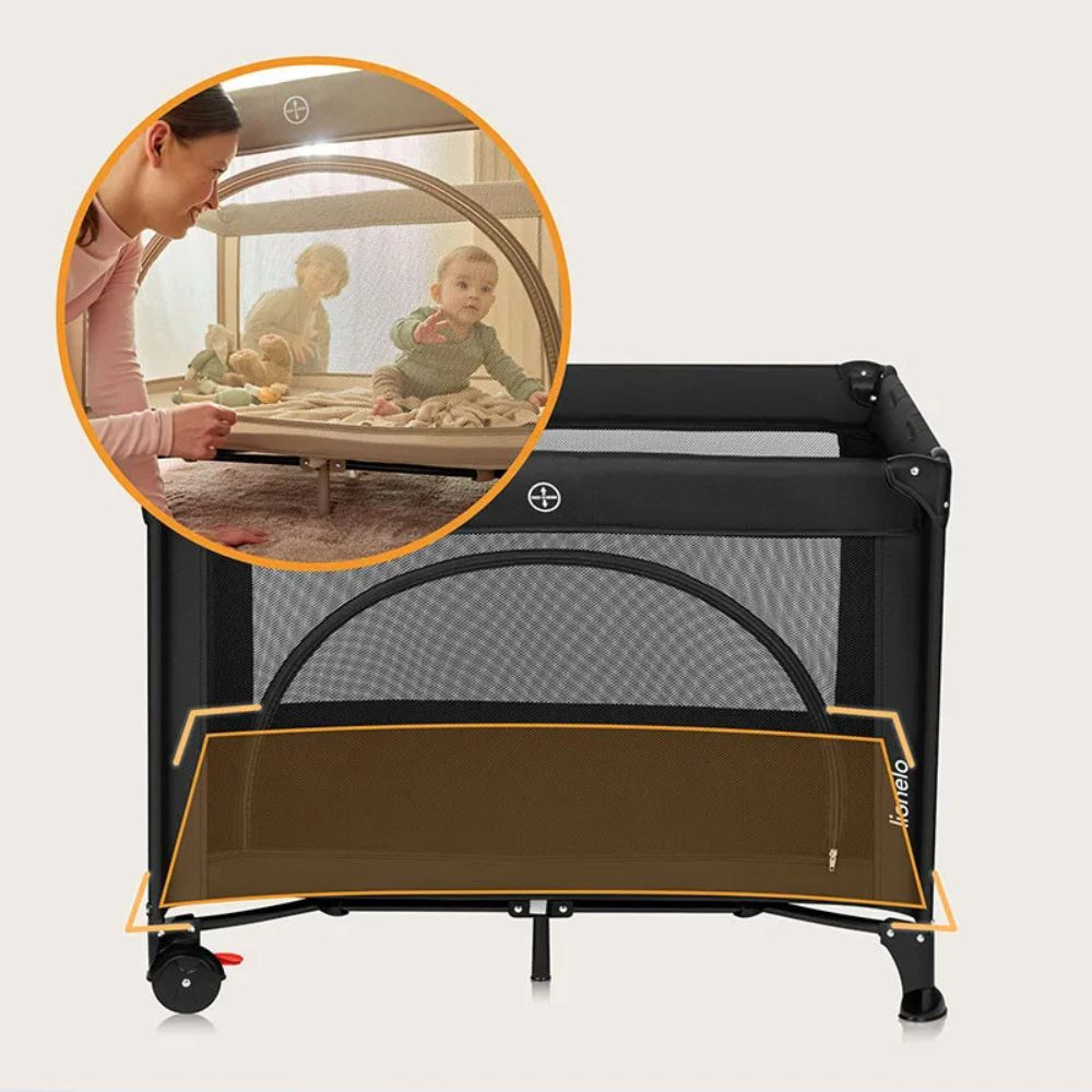 Le Lit parapluie bébé laura compact 2 en 1 black carbon de la marque Lionelo est conçu pour offrir un espace pratique et sécurisé à votre enfant, aussi bien pour dormir que pour jouer. Son format compact permet de l’installer facilement dans les petits espaces comme une chambre d’amis ou un salon. Utilisable en lit de voyage ou en parc, il s’adapte aux besoins du quotidien. Léger et facile à transporter, il se plie rapidement et se range dans son sac inclus. Son matelas avec deux niveaux de position permet de s’adapter à l’âge de l’enfant, tandis que ses côtés en filet assurent une bonne aération et une visibilité constante. Équipé de roues avec freins, il se déplace facilement d’une pièce à l’autre. Son ouverture latérale permet à l’enfant de gagner en autonomie lorsqu’il grandit.