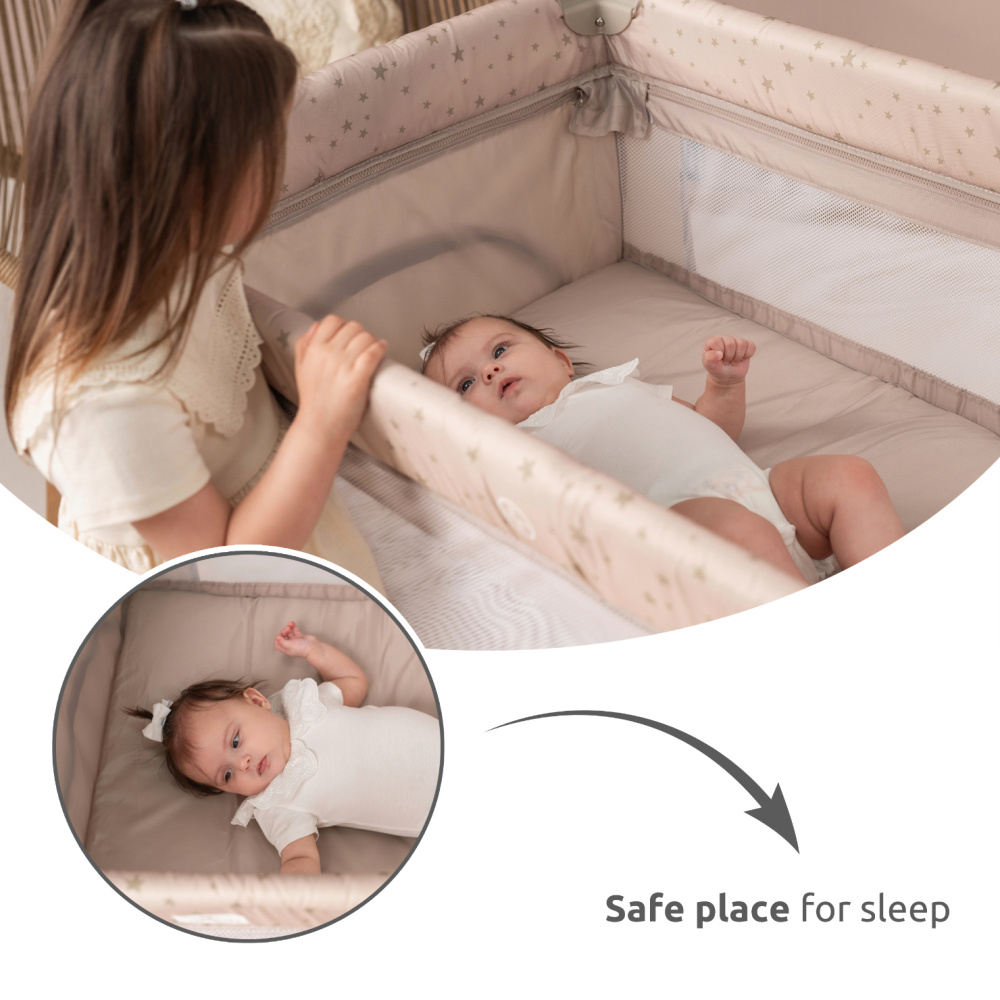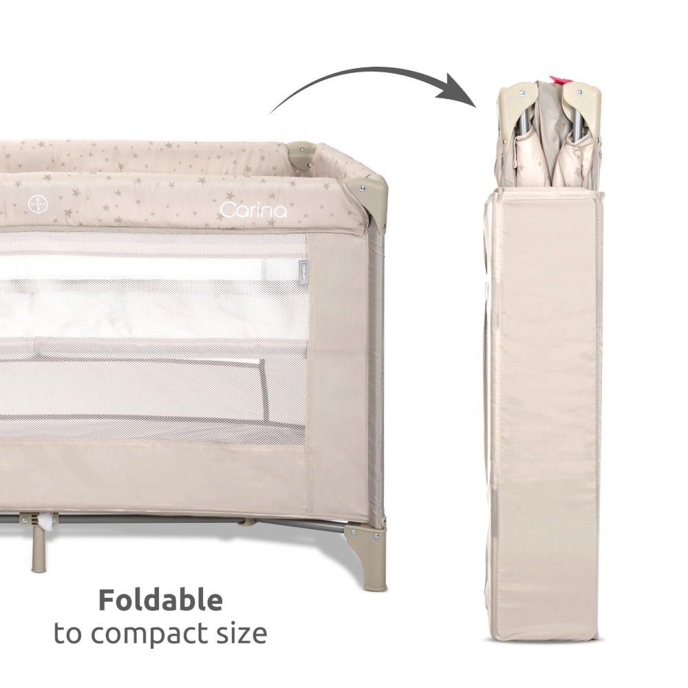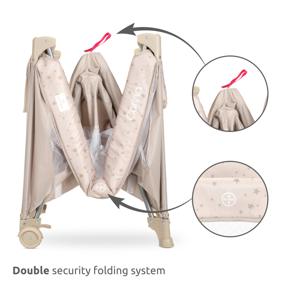 Le Lit parapluie carina 2 hauteur gris Lorelli est conçu pour garantir un espace polyvalent et sécurisé pour la sieste et le jeu de bébé. Il se distingue par ses deux niveaux de couchage, facilitant l’accès pour les nouveau-nés en position haute puis l’utilisation prolongée en position basse. Idéal à la maison comme en déplacement, ce lit se replie de manière compacte et dispose d’un sac de transport inclus. La grande ouverture latérale avec fermeture éclair permet à l’enfant un accès autonome sous surveillance et facilite l’utilisation en fonction aire de jeu. Son système de double sécurité sur la structure assure stabilité et fiabilité.