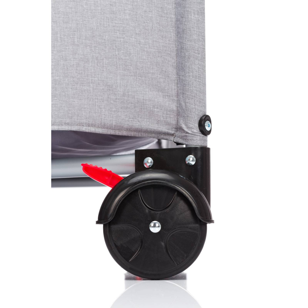 - Ce lit parapluie Fillikid est doté de trois pieds stables et de deux roulettes pratiques avec freins, ce qui vous permet de le déplacer facilement dans la pièce.