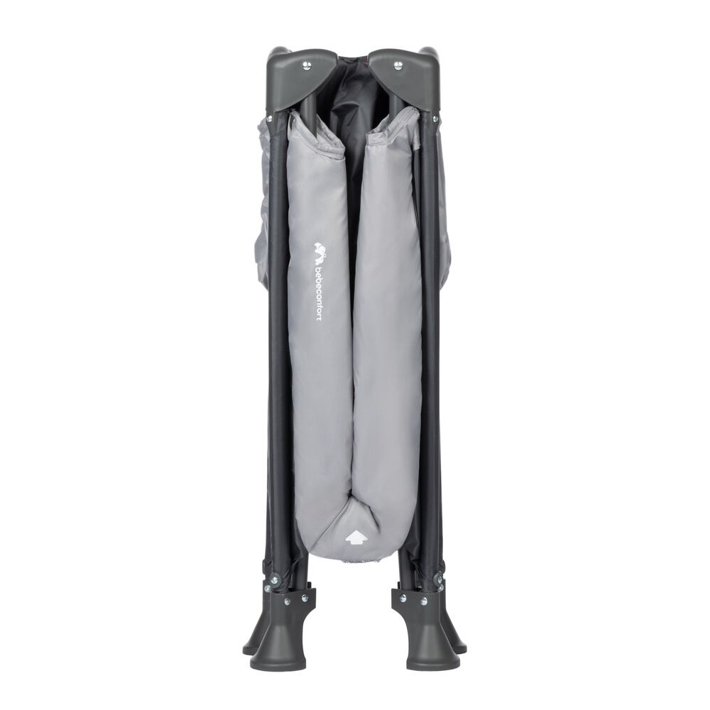 Le Lit parapluie soft dreams tinted graphite de la marque Bebeconfort. Ce lit parapluie se déplace facilement d'une pièce à une autre grâce à ses 2 roulettes. Une fois plié, ce lit de voyage est compact et se range facilement dans sa housse de transport.