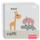 Le Livre d'éveil raffi multicolore de chez Done By Deer. Chaque page du livre est dédiée à une saison différente (printemps, été, automne, hiver), illustrée avec des éléments et des couleurs caractéristiques de cette période.