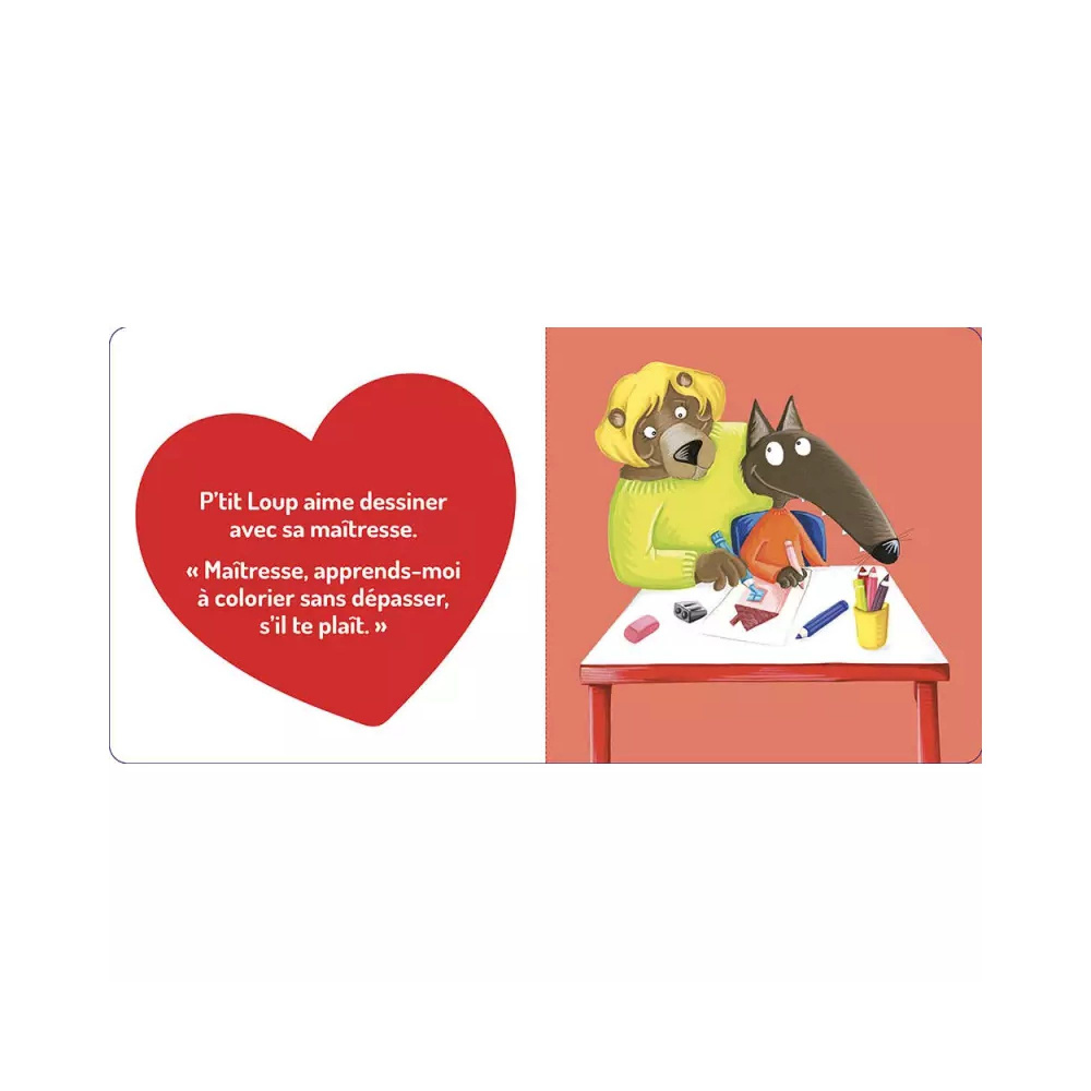 Découvrez le livre enfant P'tit Loup aime sa maîtresse de la marque Auzou. Un livre qui raconte l'affection de P'tit Loup pour sa maîtresse et les moments partagés en classe. À travers une histoire tendre et des illustrations colorées, ce livre montre à bébé l’importance de l'école l’école.