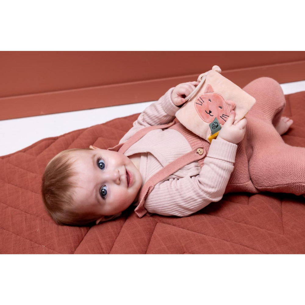 Le livre sensoriel nomade Mrs. Cat de Trixie est parfait pour divertir bébé en promenade ! À suspendre facilement sur une poussette, un cosy ou un siège auto, ce livre d’activités attire l’attention grâce à ses couleurs vives et ses matières variées à explorer. Bébé découvre un miroir caché, des perles sonores, des textures tactiles et tourne les pages pour stimuler sa motricité fine, sa curiosité et son imagination. Un compagnon de voyage ludique, doux et pratique, idéal dès 3 mois.