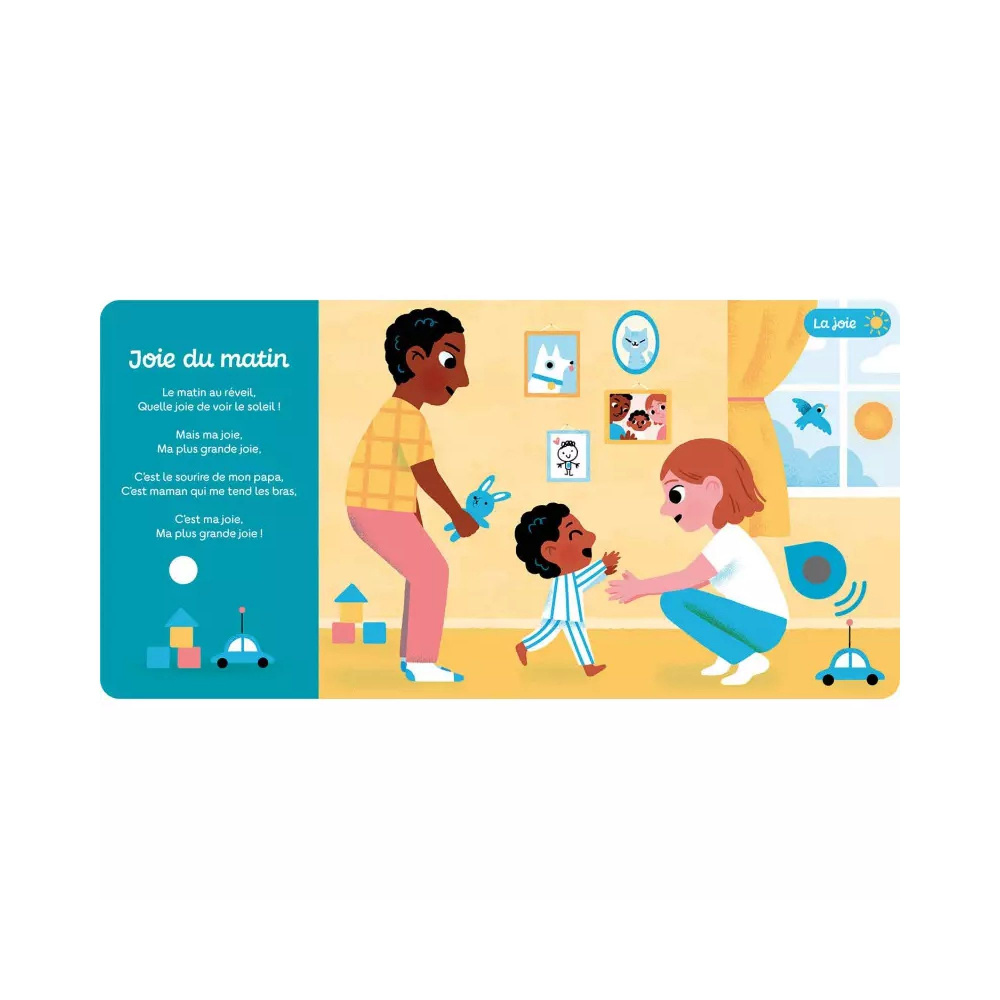 Découvrez le livre sonore Mes comptines des émotions de la marque Auzou. Un livre permet à bébé de découvrir et d'exprimer leurs émotions à travers des comptines interactives. Ce livre aide les enfants à comprendre et à reconnaître leurs émotions.