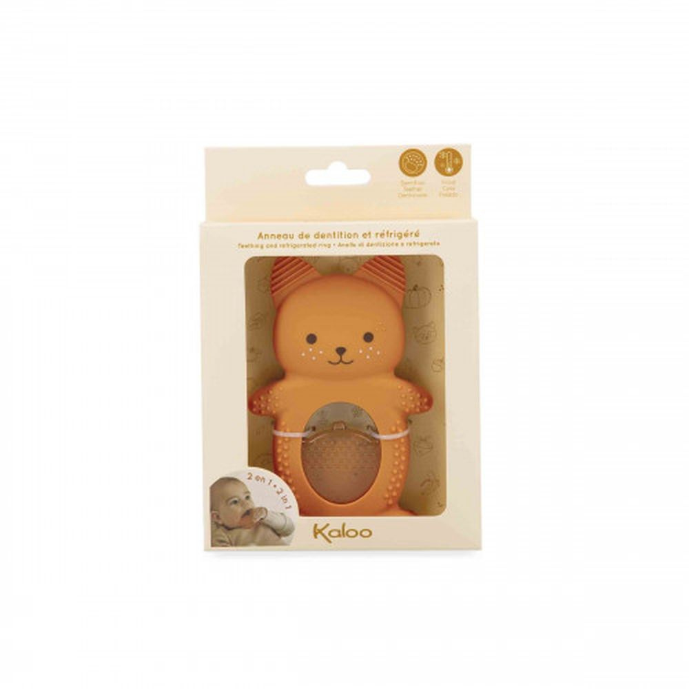 Lot de 2 anneaux de dentition et réfrigérant ecureuil de la marque Kaloo. Ce lot est composé d'un anneau de dentition réfrigérant et un anneau de dentition en silicone avec picots et rainures. Ces 2 produits permettront à votre enfant de soulager les premières poussées dentaires. Le petit anneau réfrigéré en forme de fruit se range à l'intérieur du grand anneau de dentition. Il vous suffira de placer 10 à 20 minutes le petit anneau dans un frigo avant de l'utiliser.